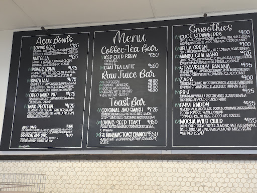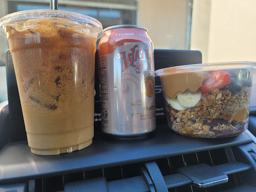 They have dine in and take out options. Smoothies, acai bowls, toast, cold brew, and chai lattes. My favorite acai bowl is the brazilian. The chai latte and the cold brew are both delicious. The chocolate "gym buddy" is my favorite smoothie. Every item is between $7:50-$9:50. Dine in here is not table service, but, if they are not busy theyll bring your items out for out, very kind staff. Be aware that the avocado toast may contain chicken flakes, they may ask you if it's okay first, but just in case ask...