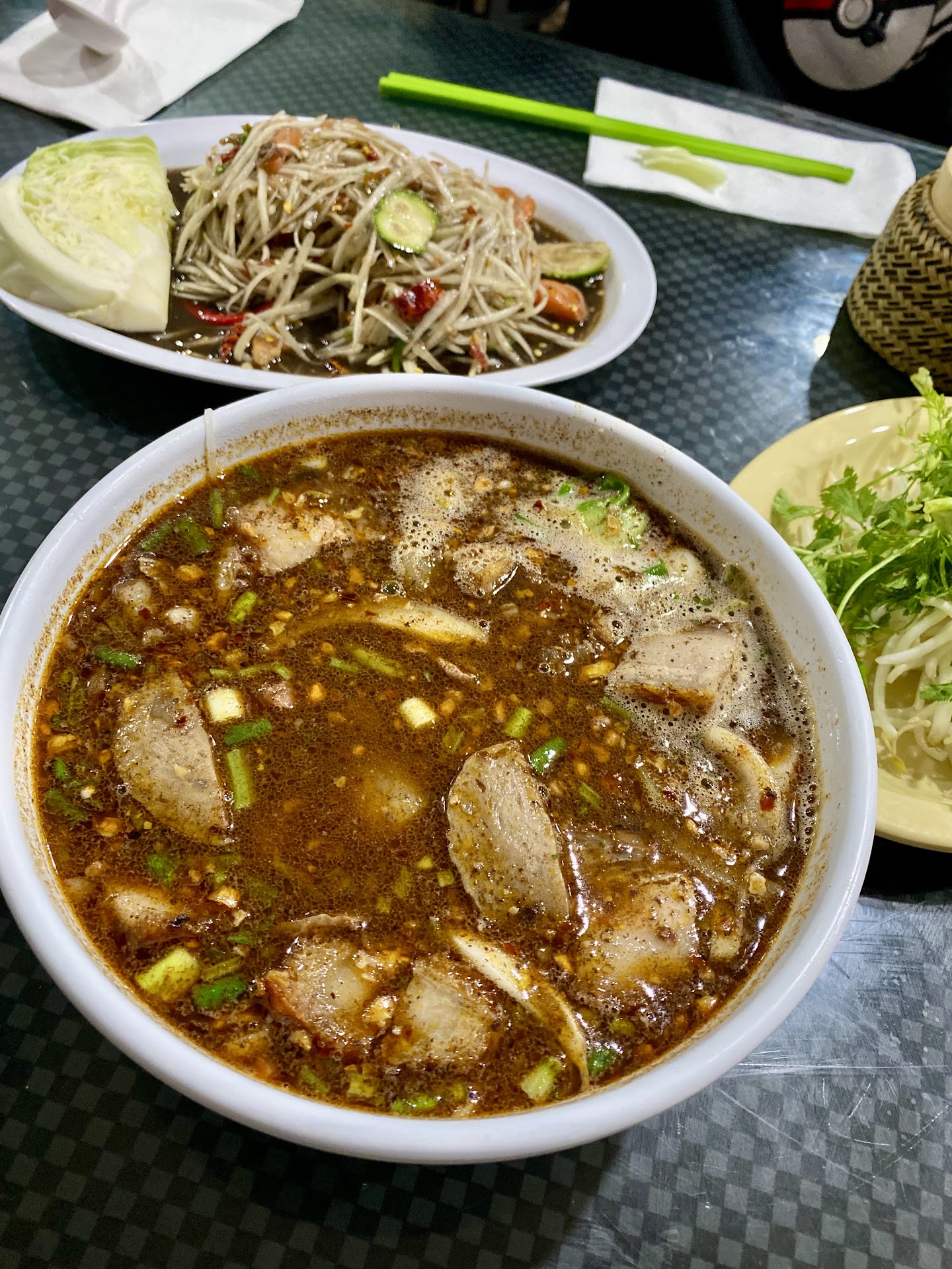 We got the Thai boat noodle, crispy pork belly, and pad see ew.