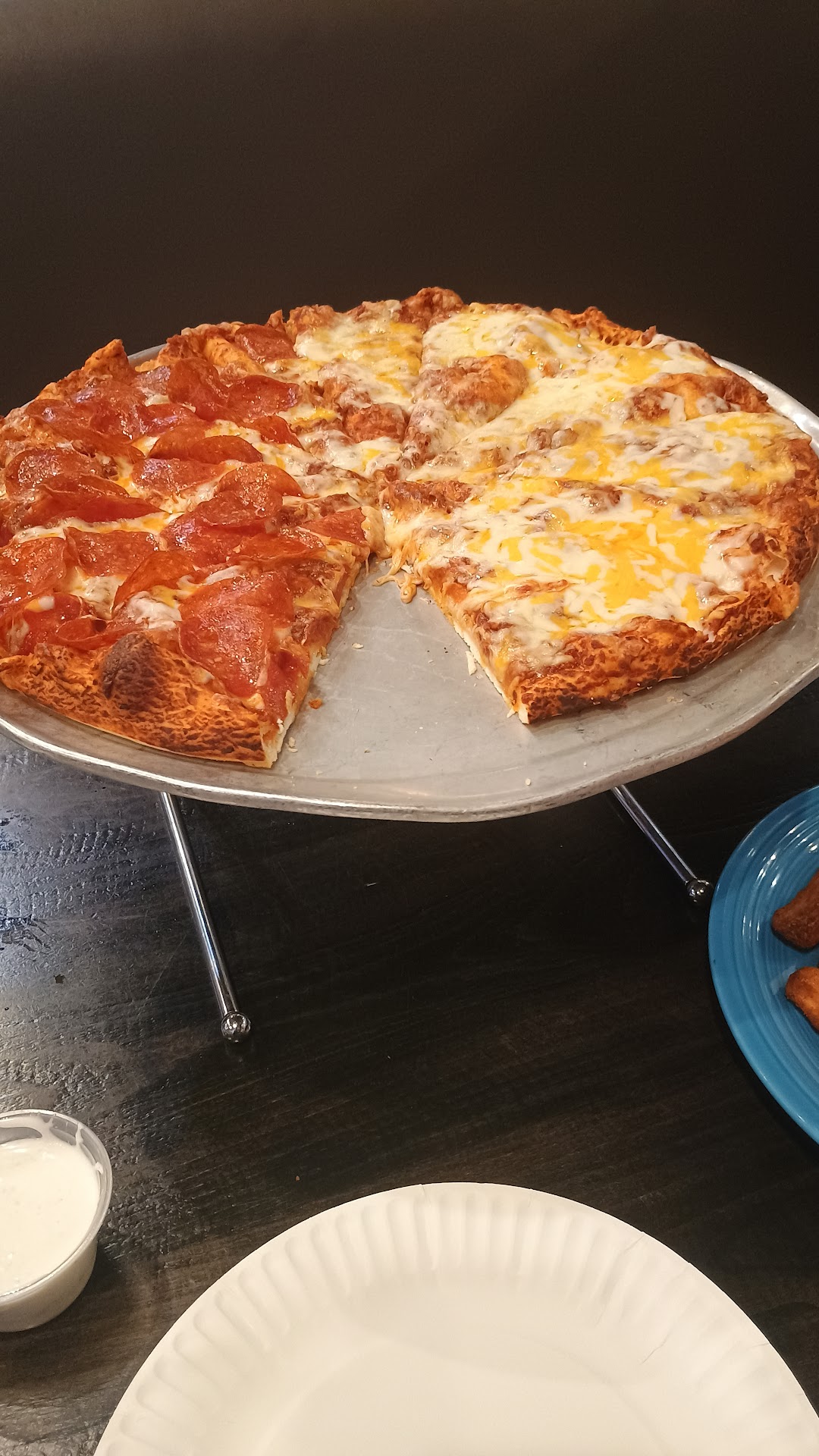 Read moreMe and my wife decided to dine there. We ordered a large pepperoni pizza. We thought the pizza would be a classic Pizza a pepperoni and cheese Mozzarella but it had cheddar cheese on it mixed in with the mozzarella. Also the crust the pizza dough tasted Frozen and not freshly made. Is very disappointing. A week later the company I work for treated us 100 + employees with a pizza day for lunch. In celebration for 90 day plus accident-free work injury incident on the job site. The pizza was bought from Me-n-Ed's 69 + pizzas were brought to feed over a hundred employees construction workers who are here building the new Amazon facility in Fresno California more than that three quarters of the pizzas that were bought from Me and Ed's we're not touched or eaten. I lost several of my co-workers which are construction workers who work hard and we build up an appetite who will just about eat anything at lunch hour how did you like the pizza just about every one of them said it was terrible. We had several different types of peaches to choose from so it was just not the pepperoni and cheese pizza. For my first experience but I did first Try Me and Ed's the atmosphere wasn't bad there was a wait time. As far as the pizza I don't recommend it I'd much rather have something like Roundtable or even a small Mom and Pops established Italian pizzeria. Cheddar cheese should never be on pizza and pizza dough should always be fresh and not hard like it came out of...