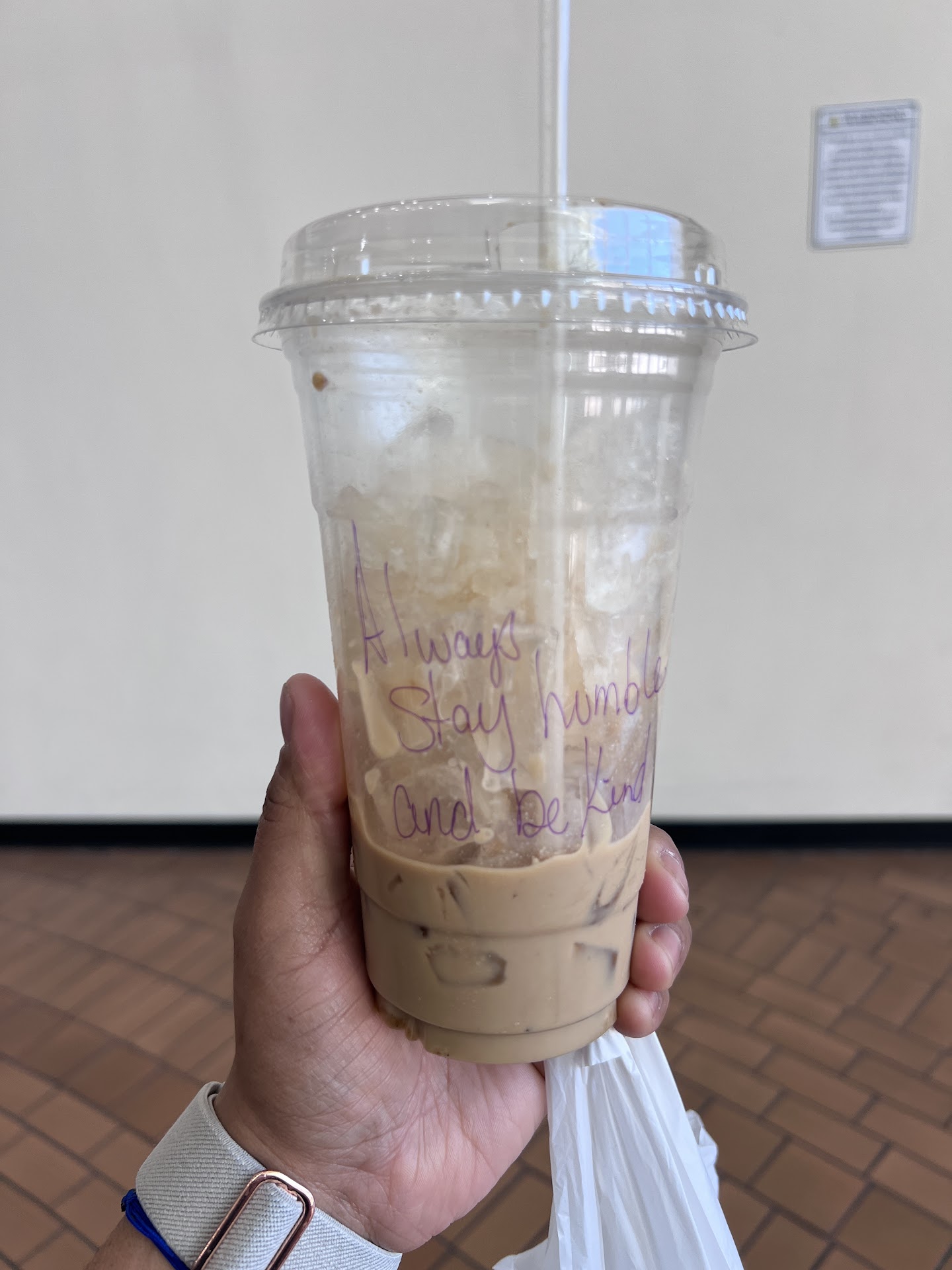 Read moreThe vanilla latte, gotten with oatmilk, was very sour and sweet. The tartness and the sweetness was overwhelming, kind of trying to compensate or maskt he sourness. There's a hint of coffee, and the taste stays in your mouth. Grainy, powdery texture, the liquid looked like a buttermilk texture, semi separated solids and liquids. The coffee was made quickly, a complimentary cookie helped with the coffee flavor. Service is nice. The cup has hand written writing. Cute message.