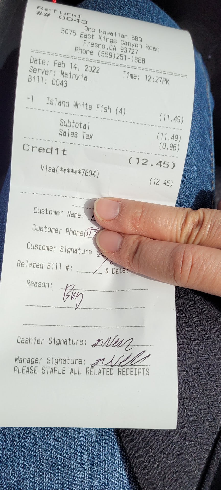 I definitely did not appreciate their lack of service and rudeness AND their lack of concern over the pest in my food. I wrote on the merchant copy of the refund that the reason was: bug. She made me keep that copy and kept my copy instead. Not...