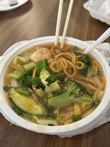 Read moreThis establishment appears to be attempting to mirror the Panda Express format, where you see the food and request what youâd like to have. For this review, my wife and I ordered the Shrimp soup and a two item meal. For the two item meal we asked for half fried rice and half chow main, with mushroom chicken and coconut shrimp ($1.00 extra). Now to rate the food: