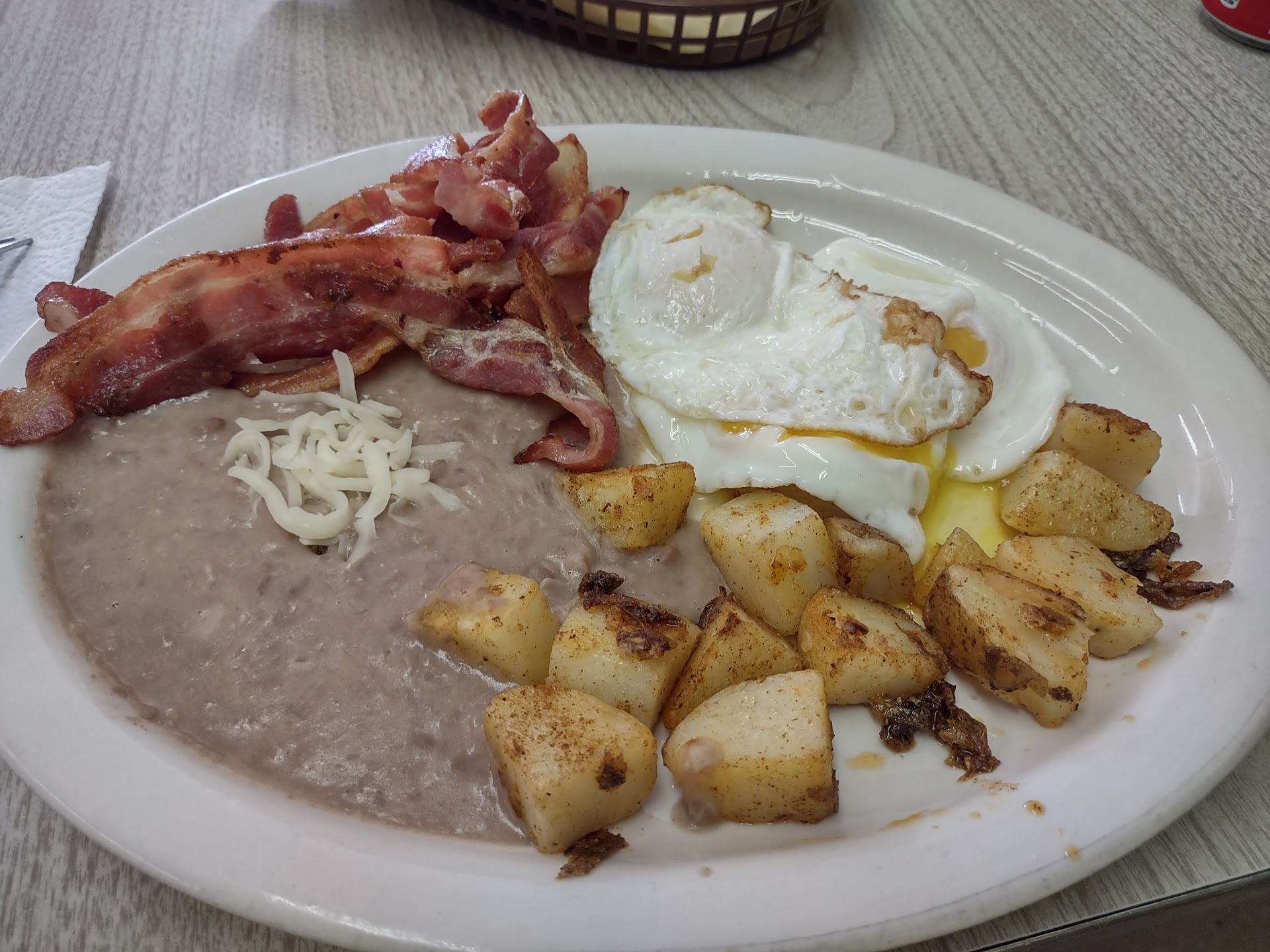 This is amazing food. I grew up on authentic Mexican, so I don’t really like most restaurants. This one they cook authentically. Most restaurants don’t know how to make real horchata…they do. Enchiladas are supposed to be made with queso fresco and that’s what they do here. However, because they know Americans like Mozzarella cheese, they will ask you what cheese you prefer. Even their pancakes 🥞 I felt like my grandparents made them. My husband ate the burrito and is so obsessed that he came 2 days in a row 😂 Oh and lastly, we got 2 drinks and 3 plates and somehow our total was only...