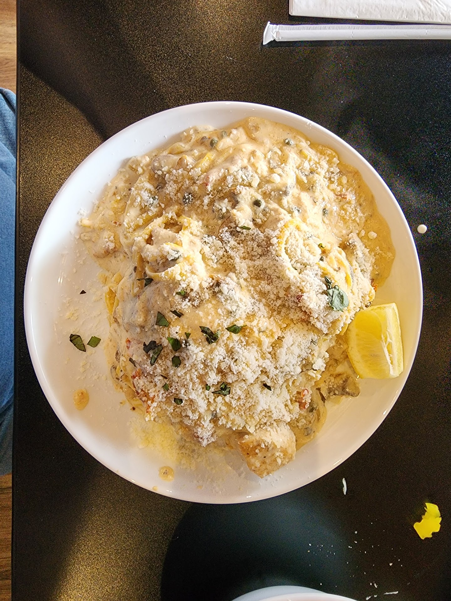 Read moreLove their food both at this location and when they had their food truck. They are a Fresno restaurant family and we have never been disappointed. The owner was cooking but came out to say hi and was great. The only negative is that they are expensive. You have to pay for good quality so that just means for my family we don't come here as often as we would like. They other negative is that they have Pepsi products not Coke. 😃 This time around we ordered Chicken Piccata, chicken parmigiana, spicy carbonate, meat tortellini and mozzarella sticks. Everything was awesome but here are some detais. Piccata was good but not very lemony (we squezzed some lemon over it to give it some more flavor). Spicy carbonara was perfect with chicken and bacon. Chicken parmigiana was excellent but the spaghetti that came with it was marinara, we would have preferred meat sauce. Meat tortellini also had the marinara but that worked just fine. The mozzarella sticks were excellent but $15 seems a little high priced. They do charge 3.99% extra for credit cards and their pricing was a little confusing at their POS system. All in all you will...