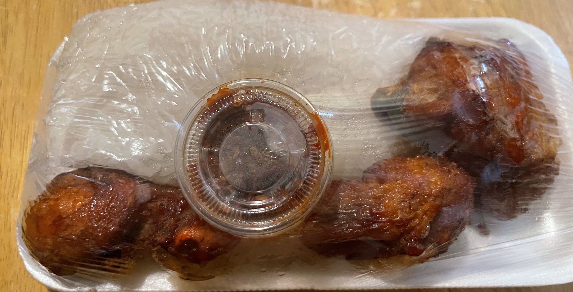 On my first visit, the chicken was decent, and the portion size was fair, with 4 pieces. However, during my last two visits, the portions were slightly smaller, with only 3 pieces of chicken, and the pieces were much smaller. The texture of the chicken was drier, possibly due to overcooking or cutting into the pieces. One of my pet peeves with chicken is finding feathers still attached after frying, and unfortunately, on all three visits, the chicken drumsticks still had noticeable feathers.