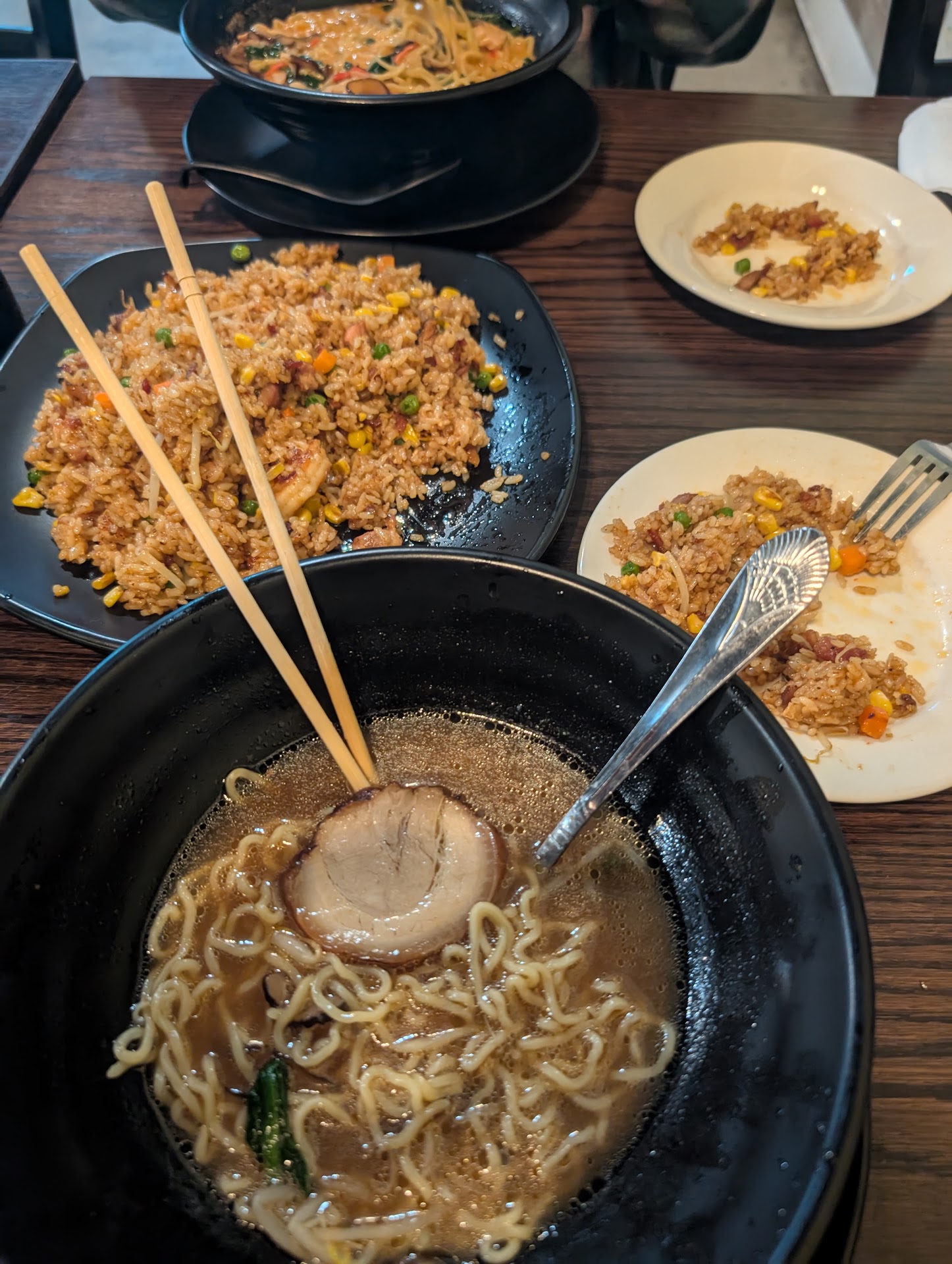 Read moreDecided to try a new spot for dinner tonight and was entirely disappointed. My husband and I love ramen and since our favorite restaurant closed down, we decided to try Shobu. We walked in around 5:30pm and the whole restaurant was entirely empty. We were seated and then waited a full 5 minutes before our server came and took our drink orders. We ordered two waters and two beers. The beers came and the waters never did. We then waited another 10 minutes before our server came to take our orders. I got the chicken teriyaki with miso soup. My husband got the Mabo Ramen and Yellow Fin Nigiri. The soup and nigiri came out first. The miso soup was just fine, tho it did separate in a very weird way. The nigiri, however, we could smell before it even hit the table. Against our better judgment we tried it. It was foul. When we told the server he simply said âohâ and took it away. My teriyaki came out next. For the amount of food that was on my plate, i was shocked that it was an $18 meal. My husbandâs food didnât come out until 15minutes after my food has been served. We each only took about 3 bites of our food and decided to leave. We went up to pay and our server brought over a manager (which we had not asked for). The manager asked how everything was, we expressed our disappointment, he apologized and presented us with out $70 tab. We will most definitely, not...