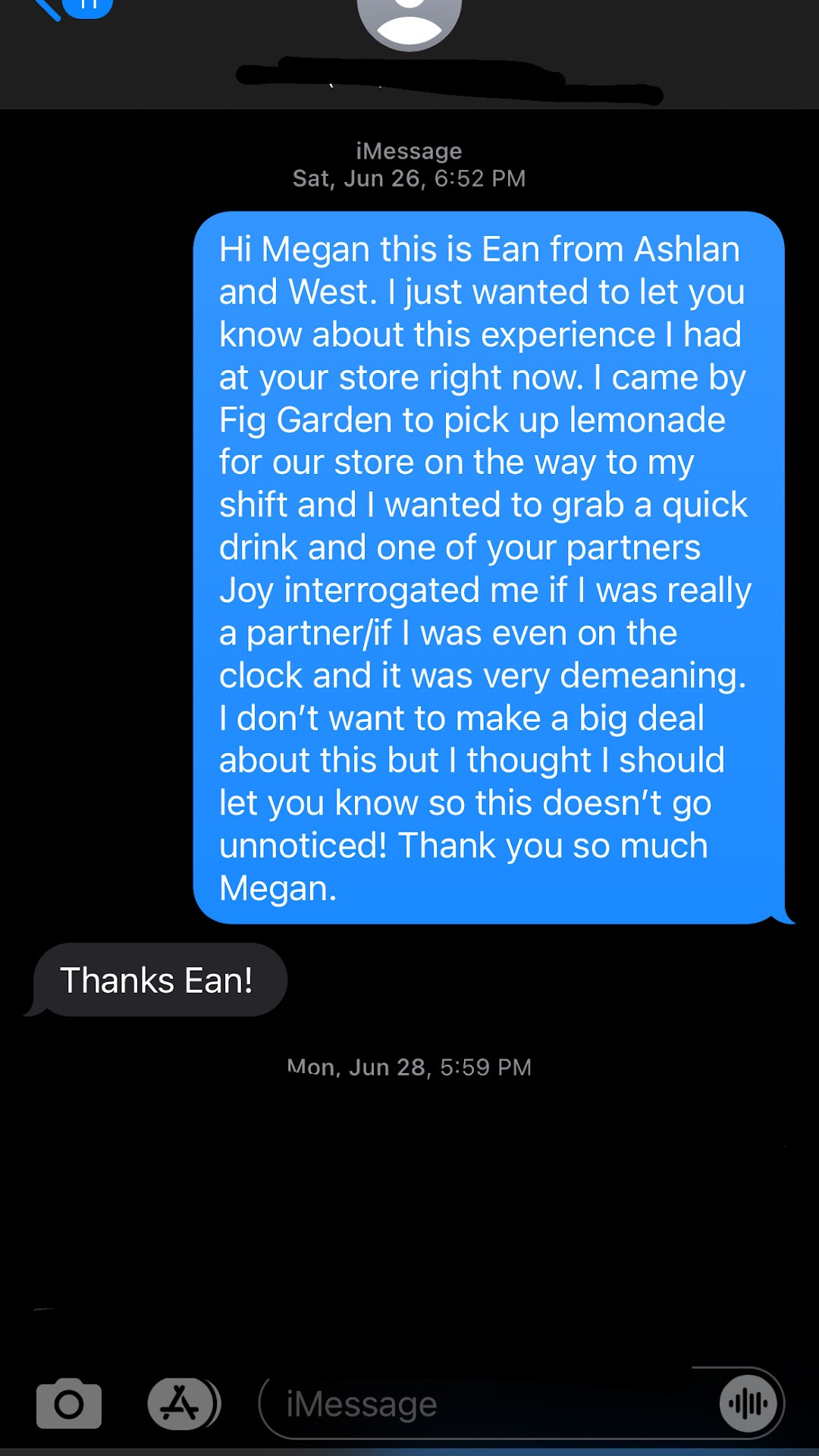 Read moreI am a 70 year old retired man and this morning I was 2/3's of my way through my morning walk. I had just completed 6 miles, had 3 miles to go and I stopped at the Starbucks in Fig Garden as I have done multiple times and asked for a "small cup of water". My history with this store is that they comply. This morning however the manager name Joey informed me that "water is for paying customers". I told him BS (I should not have said that) and that I had been given water multiple times over the years and that while I was not a paying customer at the moment I had spent thousands of dollars over the years in Starbucks. Still he refused. While the cost of a "small cup of water" may be a 10 cents at best, the loss of my thousands of future business at that Starbuck will go to other Starbucks and Kup of Joy in the area. Joey should me exactly how they feel about seniors who carry very little if no $$$ at all while walking. I wonder if the benches outside are reserved for only...