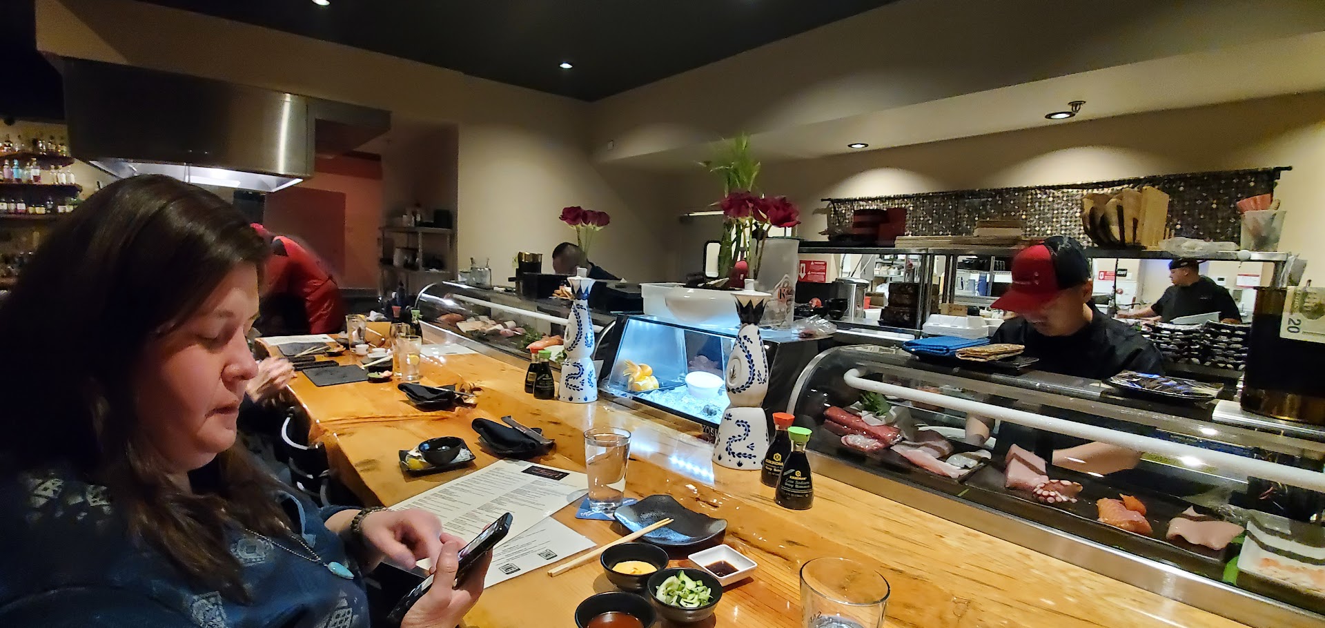 Cleanliness/atmosphere: 10/10 From the get-go you are shown exactly what this place is all about. When you walk in, the bar is one of the first things you see, with plenty of whisky related decor in the waiting area, including a comically large bottle of Bulleitt bourbon. As we made our way to our table (thank God for reservations!) We were able to see both the traditional charcoal grill on which our appetizer was cooked, and the sushi station hard at work. There was no doubt in my mind that everything was clean and sanitary, and even the restroom was in good order, with no graffiti. They also definitely make an effort to ensure that bathroom never, ever smells anything less than wonderful.