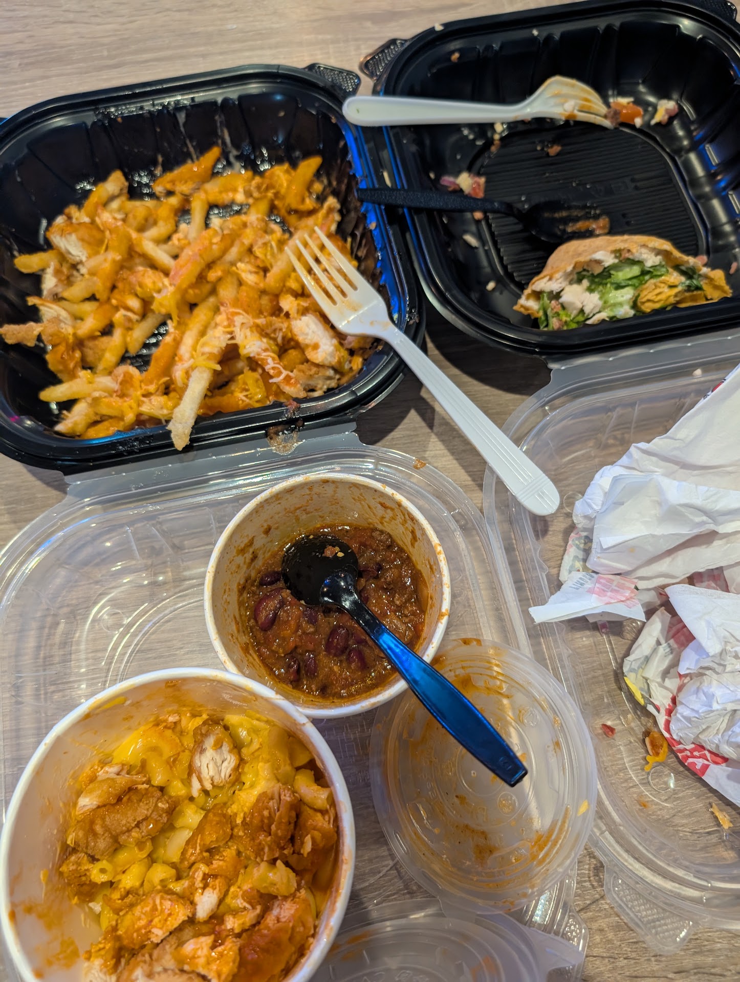 We ordered the (1) Buffalo Chicken Fries (combo, comes with a drink) the (2) Buffalo Chicken Mac & Cheese, the (3) Bacon Chicken Ranch (grilled, chipotle tortilla) snack wrap, and the (4) small chili. Today I found out or am reminded that we're either not a big fan of buffalo sauce, or the $50.00 food we ordered here wasn't that good afterall... so perhaps, while this review might be slightly unfair or biased in the matter that we're not huge buffalo sauce fans and should or could have ordered with a different sauce, I can say we won't be coming back to this franchise for some time.