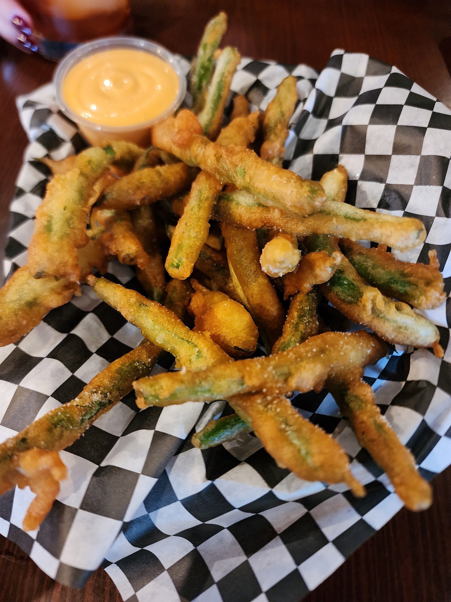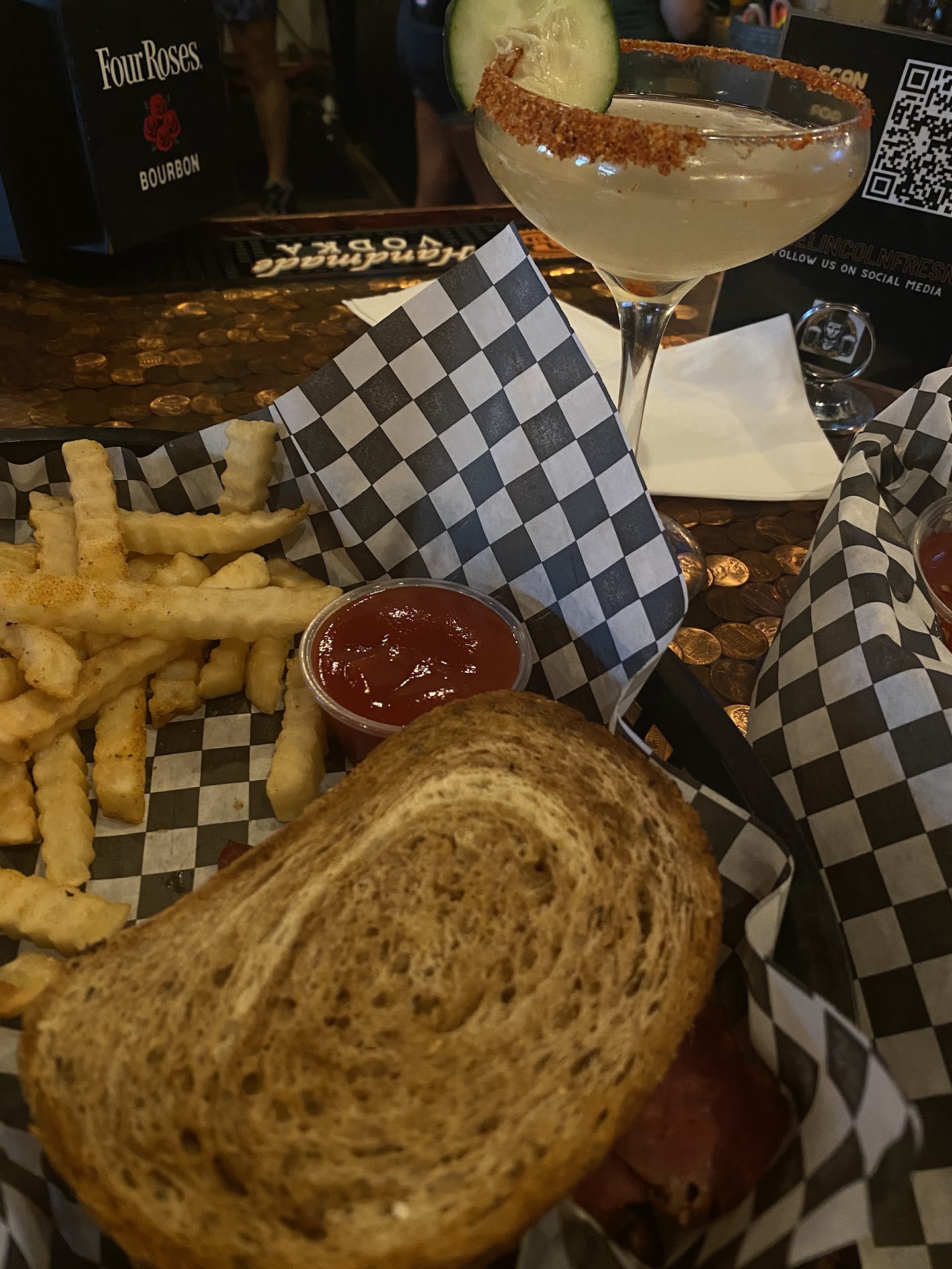 My first time here. Honestly I never knew it was there, heard about it but never was interested until I was craving fish n chips. Ok, to begin the inside is crazy small, there's one unisex restroom. One. Which means if you gotta go you better hope somebody isn't "taking their time". Seating is very limited. They have a good selection of alcohol drinks, beers etc. They seem to have a good reputation on their creation drinks, but I'm not huge into alcohol anymore so, ymmv. Food! We ordered olive tempenade, calamari, fish n chips and an Angus burger with pork belly. The olive tempenade was tasty and savory on good bread, a little sweet ,but good. The calamari was good also, very delicately breaded with slightly burnt jalyummy. Slices yummm. The fish n chips was excellent. Two big Long pieces of Basa fried to perfection and I'm not a huge french fries fan but these were delicate and perfectly seasoned and NOT soggy! The Angus burger was very good, the addition of pork belly gave it a smoky sweet "authentic" flavor, the bun was perfectly toasted and tender , great burger ! Cost ? Well it wasn't cheap at all, but good food isn't free so... I'd say the cost score is 5 out of 10, it won't break your bank. Our server was an absolute beauty and really sweet 🥰 . In closing , it's a good , solid neighborhood place to enjoy good food. On a side note they have a bar made of pennies in resin that's kinda cool. And decent TV coverage, I was surprised to see my Steelers on, putting a whooping on Detroit. Check it out. Should be a good place to take a date or, stag or with good friends...