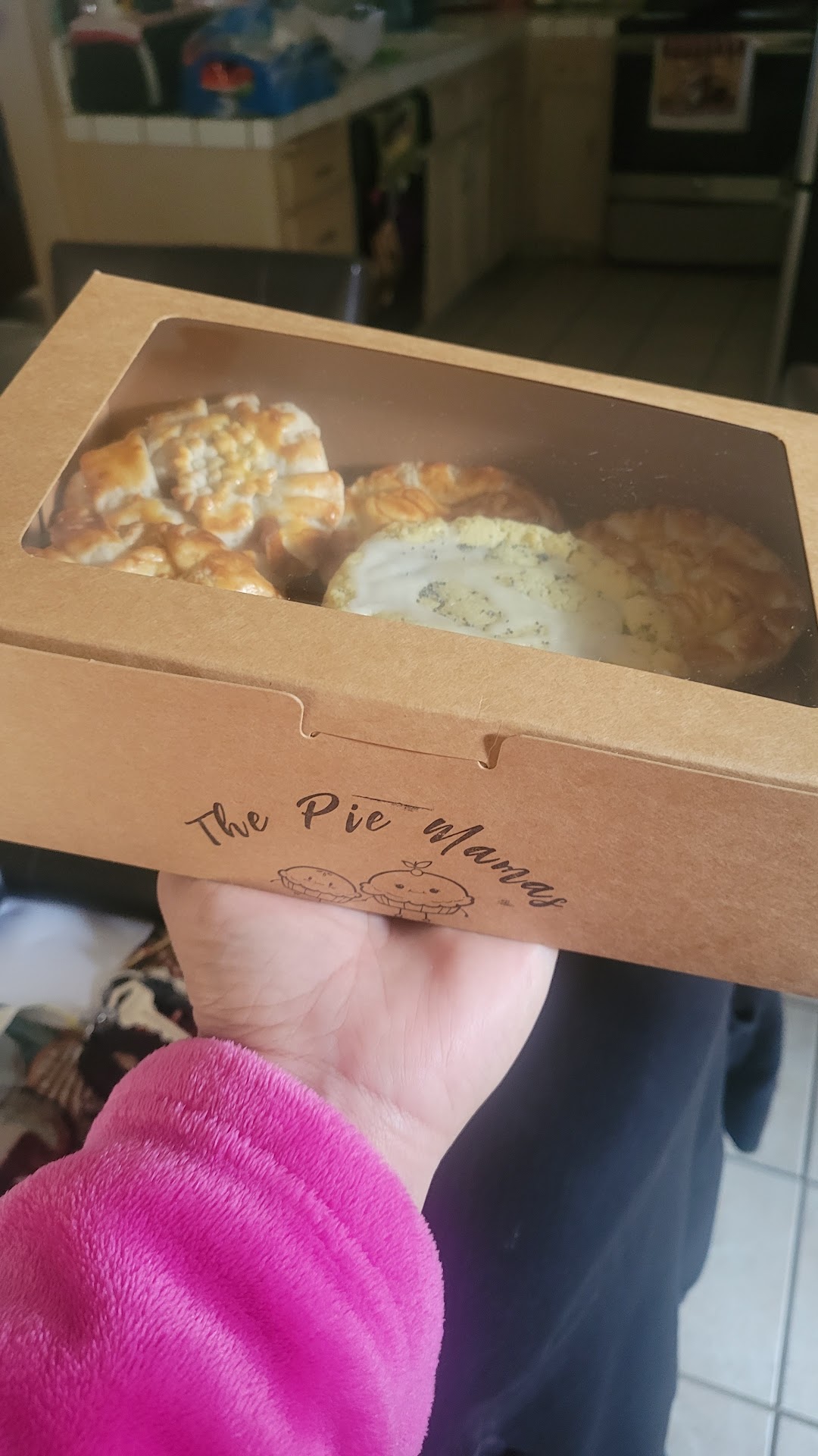 We ordered 6 mini pies, 3 strawberry, 2 bourbon pecan, and 1 apple. Everyone loved the pies! Besides the filling we all loved the crust, it’s so buttery and soft but still crusty (if that even makes sense lol) and the filling is just enough and so flavorful. They offer a variety of flavors that are so good! I always get some when they do popups and the customer service is always the best! We are definitely going to be ordering for...