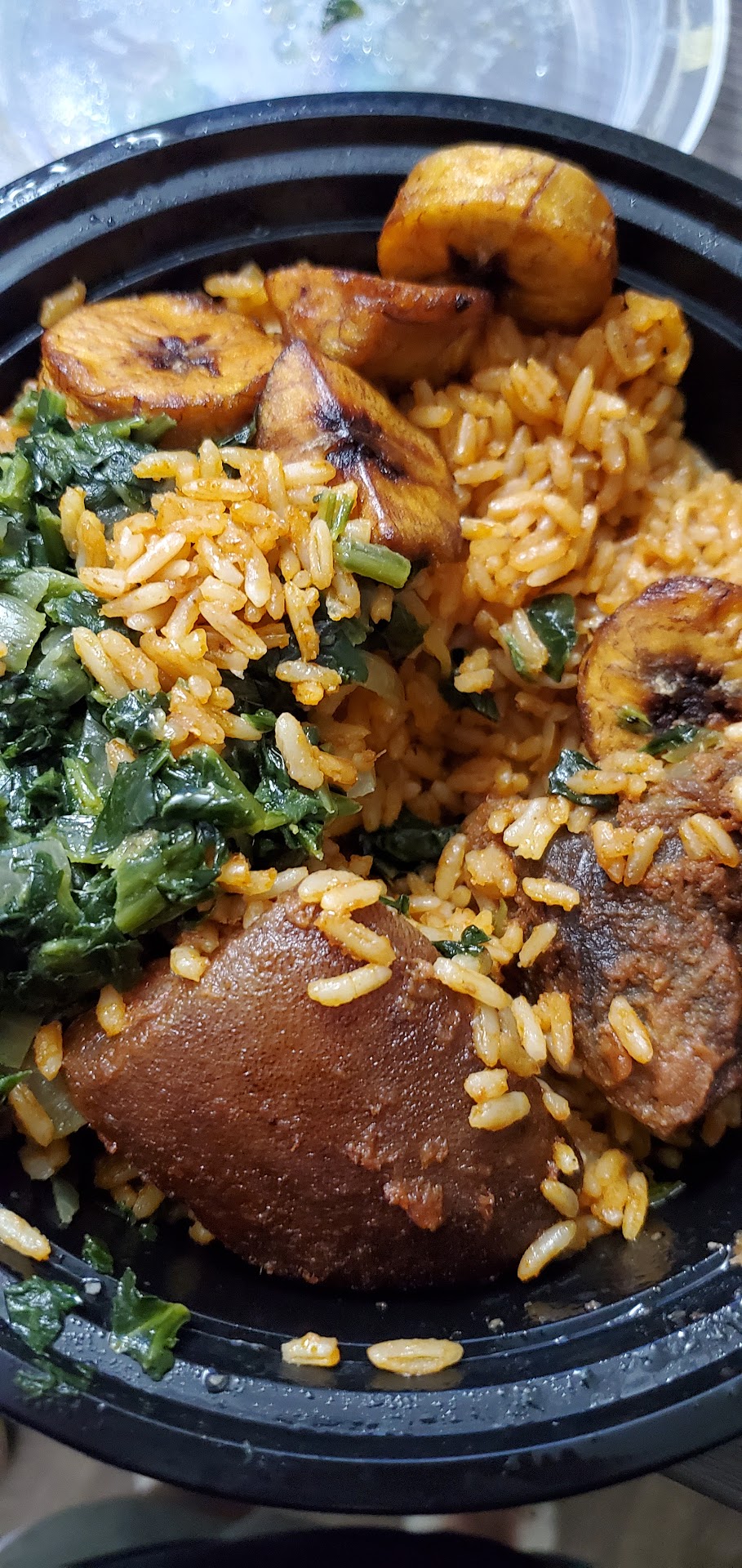Going to leave my honest review. As a Latina who always has savory, and spicy food. I have been wanting to try African cuisine, way before tiktok made it a thing. My husband and I enjoy trying different cultures this is how we find our favorite places to eat. Sadly, I can say the food was not the best, I ordered the chicken joloff, husband ordered the beef joloff. My chicken was dry and flavorless, the rice tasted okay but lacked flavor, tasted like a boxed Mexican rice. Not a fan of plantains so I cannot comment on it however my husband liked the plantains said it was the best thing in the entire meal. His beef was tough and chewy, also had no flavor. My favorite was the spices used in the greens, the greens saved the meal but even then wasn't worth the $20 for the meal even the portions weren't worth it. I had like 4 slices of plantains not even a whole or half a plantain. Food tasted as if was pre-made and just warmed up due to the low quality of meats and the flavoring. We asked for our meal to be spicy and nothing exceptthe greens were a teeny bit spicy the meat, rice had no spicy no salt nothing. I originally went to try something (egusi soup/fufu) but I didn't see it on the menu. Best thing about our meal was the Jamaican drink ting... Prices are ridiculous, the fufu (which I didn't order because I didn't see the soup I wanted on the menu) was $20 alone so I could imagine the soup being $18-$20 for one serving plus the $20 fufu so my meal would have been 38$ for just myself going to try the other African restaurant in...