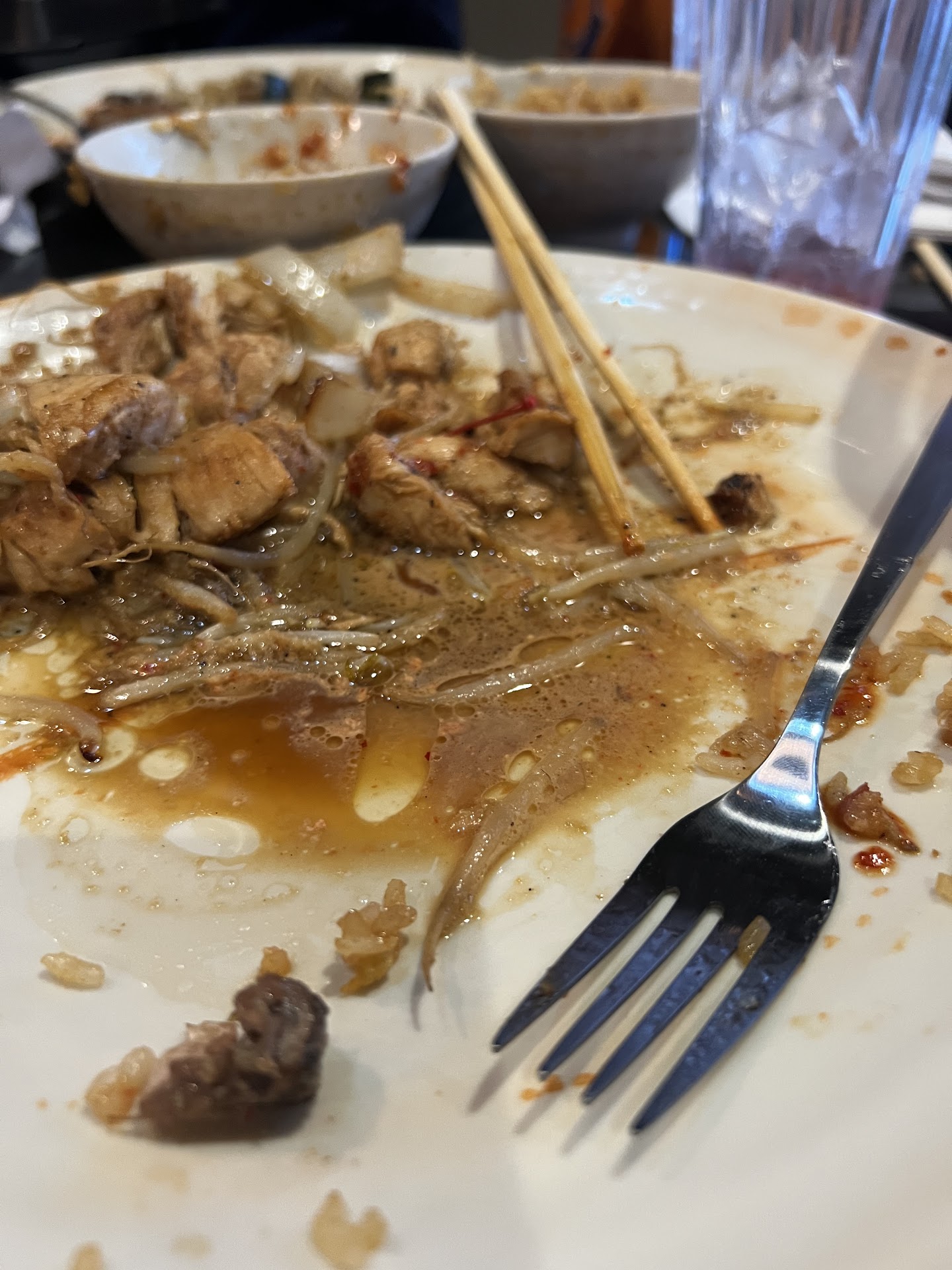 The waitress was upset because I asked her to repeat herself after she mumbled something about silverware. A male waiter came to clearly say what the waitress said. Asking if I needed a fork when I was using chopsticks.