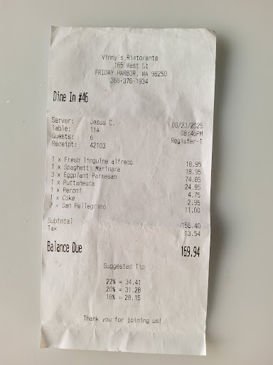 Read moreI recently had the pleasure of dining at Vinny's Ristorante in the picturesque San Juan Islands, and it was nothing short of a culinary delight. The ambiance at Vinny's is warm and inviting, with rustic decor that exudes a cozy charm. Dimmed lights and soft music set the perfect tone for a relaxed and intimate dining experience. The staff at Vinny's Ristorante truly understands the art of hospitality. Attentive without being intrusive, the service was impeccable. Our server was knowledgeable about the menu, offering helpful recommendations and ensuring a seamless dining experience. Vinny's Ristorante is a gem in the San Juan Islands dining scene. From the moment you step through the door, you are welcomed into a world of flavors that transport you to Italy. The combination of exquisite cuisine, charming ambiance, and impeccable service make Vinny's The libations at Vinny's are nothing short of spectacular. The cocktail menu boasts an array of expertly crafted drinks that not only complement the cuisine but stand out as stars in their own right. The bartenders at Vinny's have mastered the art of mixology, delivering drinks that are not only amazing in flavor but pack a delightful punch. Whether you're a local or a visitor to the San Juan Islands, Vinny's Ristorante is a culinary destination worth discovering. Prepare to be enchanted by the tastes of Italy in this...