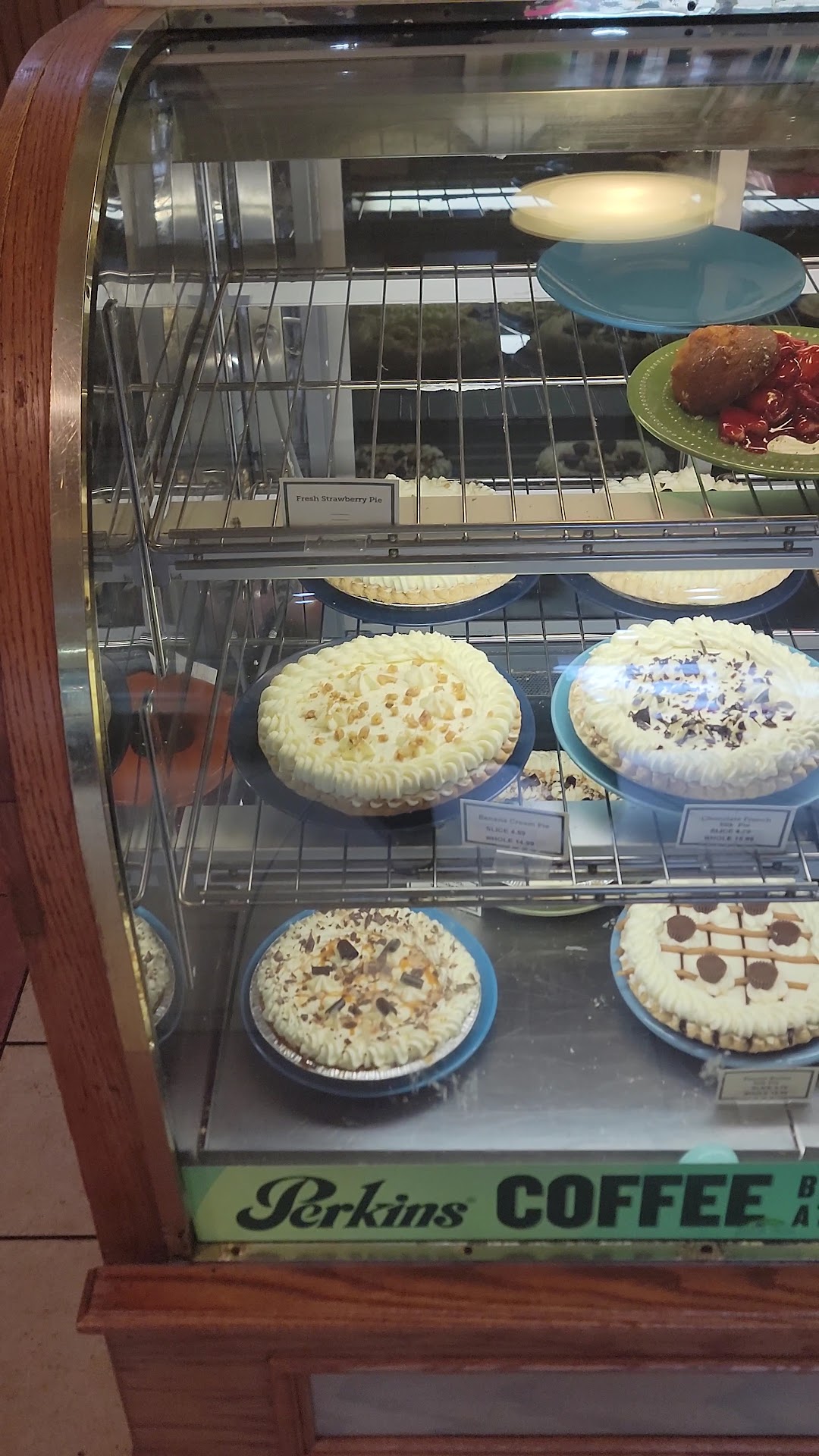 I want to talk about my most recent visit. Our host approaches me and my partner with "Two?" instead of being polite and going "Hi guys, welcome in" as most restraunts do. We sit down, table is sticky from the previous tables mess. This tells me the tables dont get cleaned good enough. We put in our order, I asked for the Brioche french toast platter with scrambled eggs and sausage. He orders the southern fried chicken biscuits breakfast. We wait... A WHILE for our order. My order comes out... less than hot. I also got bacon instead of the sausage I asked for. His order comes a few minutes later because they are "still cooking it". When it does come out, its cold. How is it cold if its still being cooked? Beyond me. Also the chicken patties they put on it were very small. We left literally promising to eachother in the parking lot to only come here to get pies to-go. Our other visits have also been very unpleasant. We once came in and we got very slow service because they only had ONE server... ON EASTER. Poor employee... we also got charged for the wrong order this same day... and then when they "fixed" it, it was still wrong. Theres only two people who work at this location that do their jobs real good. Unfortunately I do not know their names, but one is a shorter blonde lady. Usually in a pony tail, shoulder length hair about, maybe in her late 40s early 50s. The other employee is a man with dark colored hair, maybe late 30s early 40s. Hes been employed at this location for years. I enjoy seeing those two from the times Ive been coming here, but the rest of the employees need to...