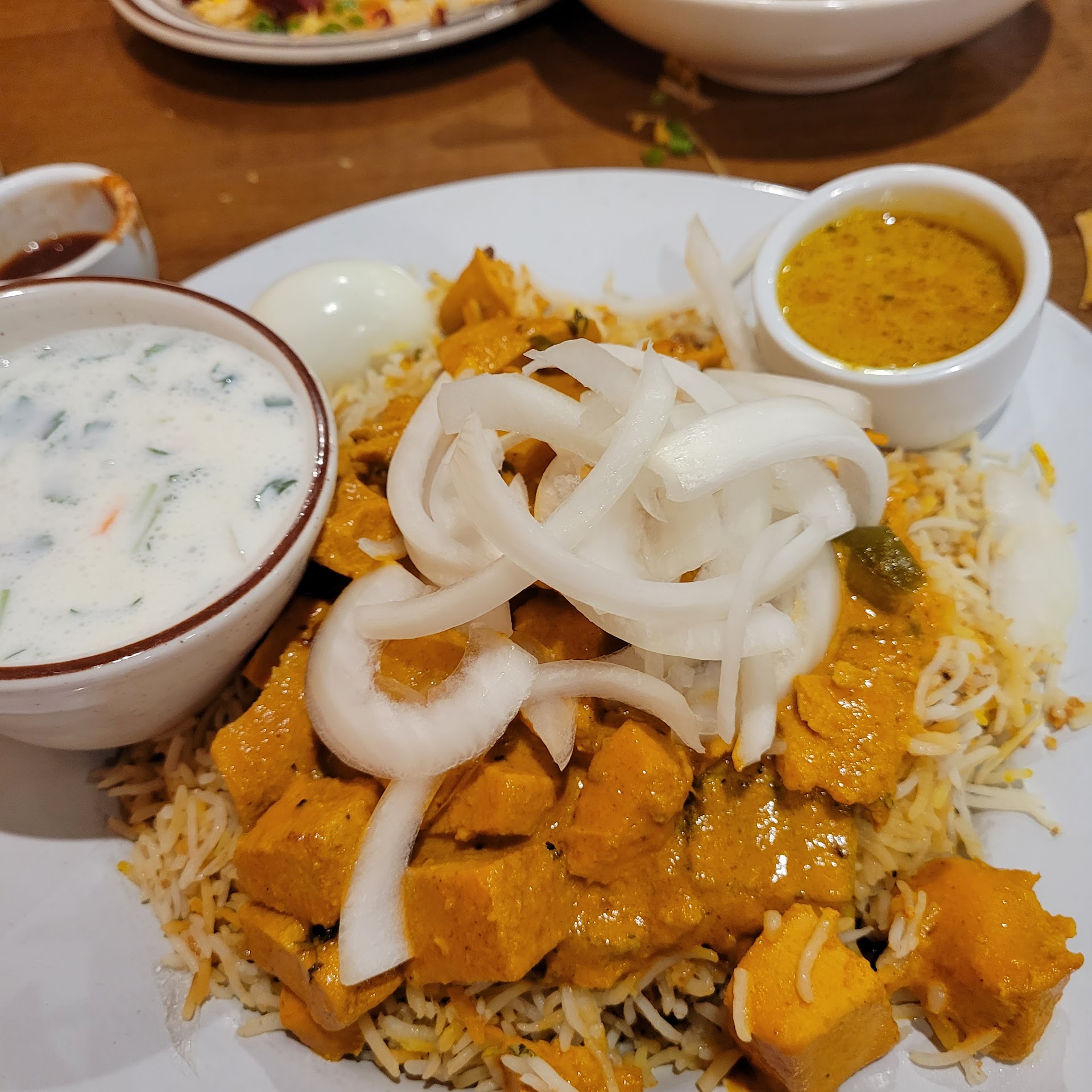 On our most recent order, I decided to spice things up with the Chicken 65 biryani, and wow, what a choice! The chicken was nothing short of perfection,, tender, bursting with flavor, and the spices were just right. The dish came adorned with sliced onions and even featured a hard-boiled egg, adding a nice touch that elevated the entire meal. Not only was the taste incredible, but the portion size was impressively generous, making it an absolute steal when paired with the fluffy garlic naan. The naan was warm, slightly crispy on the edges, and just the right amount of garlicky goodness to complement the rich flavors of the biryani.