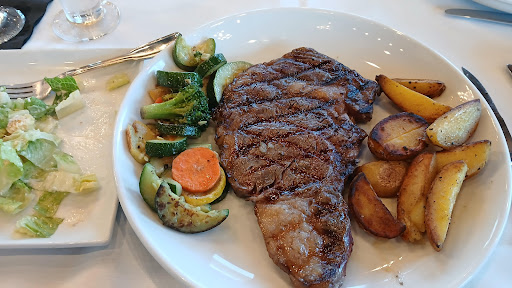 Read moreMy birthday fell on a Thursday August 28th and my wife and I both elected to eat the steak special for that day selecting the $35 Rib Eye steak special for the occasion. This was our first visit around 5 pm and the restaurant was well lit with a lite crowd of diners seated at about half of the 20-24 four seat tables. There was not an abundance of color in the basically white theme or plant life to enhance the decor. A picture of a dog with a cocktail adorned the wall we noticed. The host and waiter were very cordial as were other workers. The bar served drinks and took a little longer for orders than they said was usual. I had a beer priced at only $4 and my wife had a French 75, her first, at $14. The menu was limited in our opinion and surprise, but sometimes this is good. We both selected the Caesar salad instead of house salad and agreed it could have used extra seasoning. The steaks were cut about 6 by 3.5 inches and 3/4" thick with some gristle and large areas of fat suggesting either a Prime or Standard cut instead of Choice. However the aging seemed good to provide a tender flavorful taste as a result. The sides provided were a mixed vegetable and wedge potatoes cooked to tender bites. We enjoyed the meal and would consider this a slightly upscale restaurant for dining even though the patrons dressed in mixed attire with many in shorts and casual dress. The evening would likely be a different atmosphere with candle lit dining and better dressed patrons to set the mood. The owner also has a Galveston location we plan...