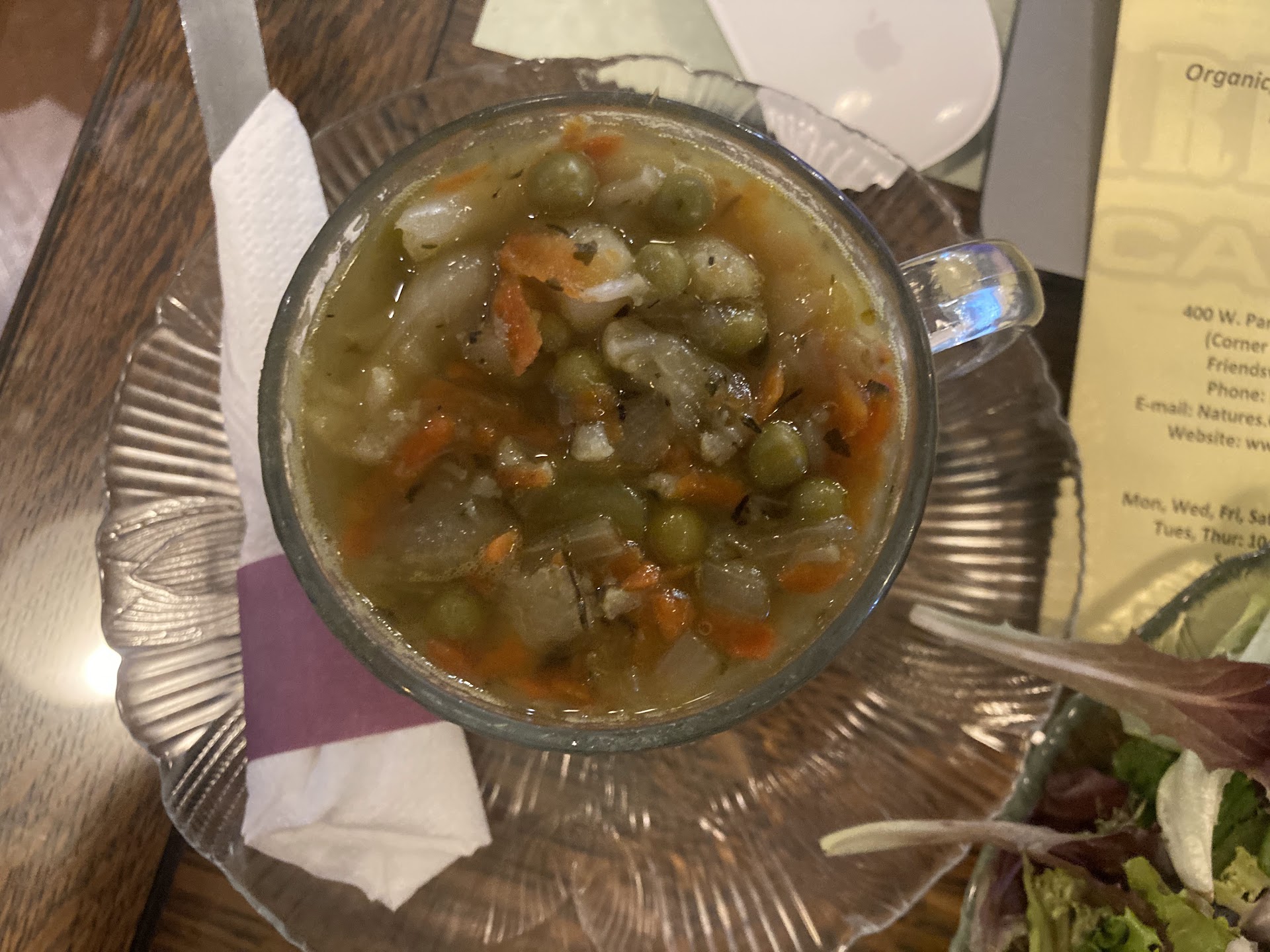 Instead of waiting for us to leave, he had the young man sweep it up in front of us and around our chairs all the while making it a HUGE scene. My boyfriend got up and cleaned the mess up because the guy had to stop making our smoothie and food. Our salads and drinks came out at the same time after waiting for 15 minutes.