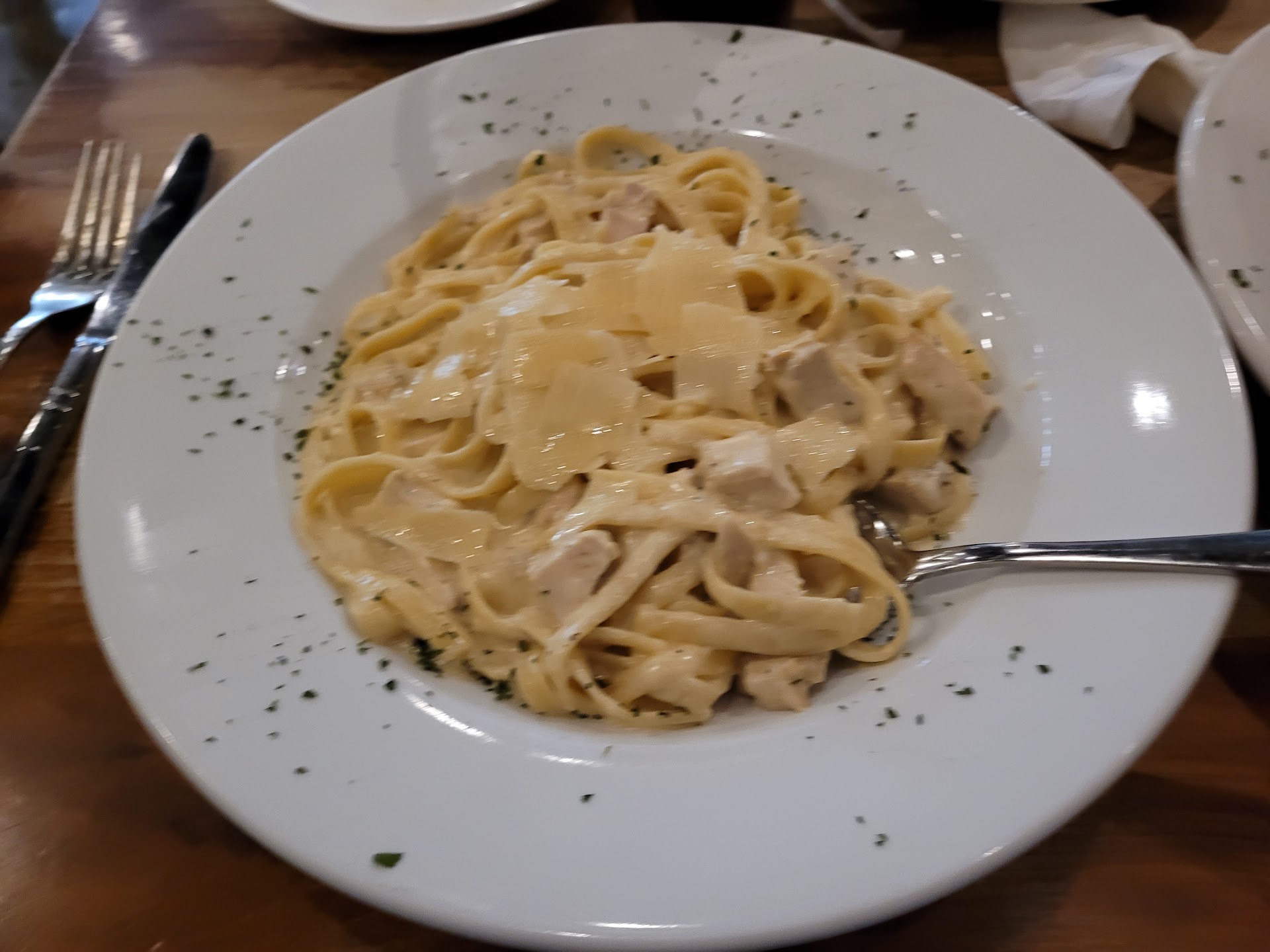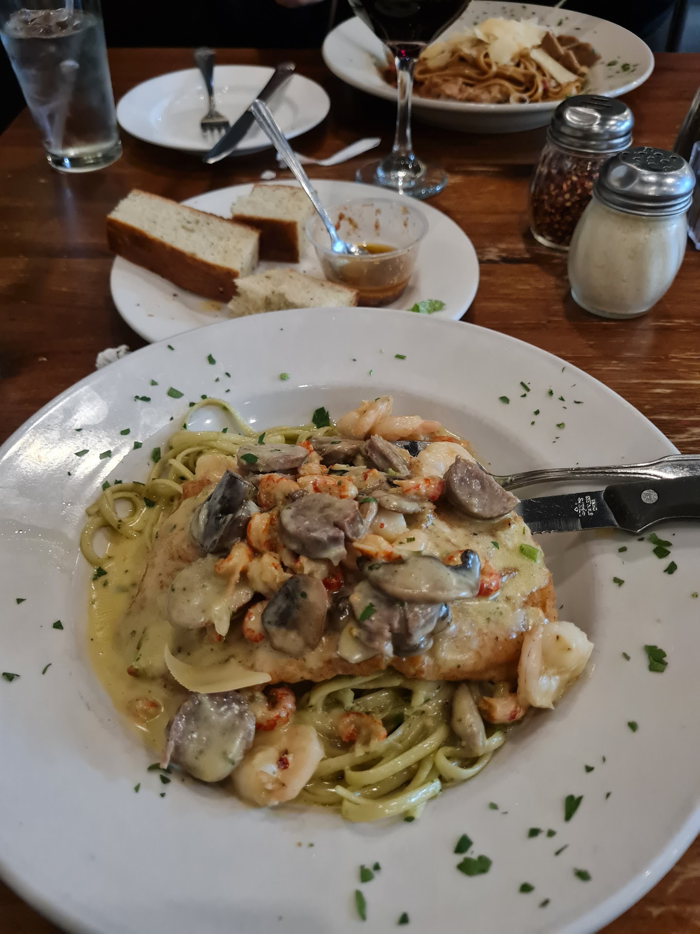 Read moreOne star for restaurant and food 5 stars ⭐ for the waiter. Where to start let's start with appetizers. Crab cakes something simple and to the point right. Especially since they serve frozen sam's club out of the box crab cakes. One problem they forget to cook/fry/microwave the crab cakes. Not sure who could give them more than one star the only food good or eatable was the soup and I'm scared to see what tomorrow will bring stomach wise. The snapper you would think for $31 you would get a good meal even since it states there is scallops and shrimp as a topping. Should have mentioned there is less than a shaving of scallop to the point you can not find them on the plate. Shrimp again frozen not even room temp sooo disappointed. Chicken Alfredo it's really sad when you can honestly say olive garden hands down is so much better, and cheaper! Don't need a refund or coupon we will not darken the doorway there again. P.S. if you chose to visit this location remember to use the bathroom you have to walk through the employee's work area to get to the bathroom which are not that clean. Good luck! Just an honest review unlike so many I have seen on here...