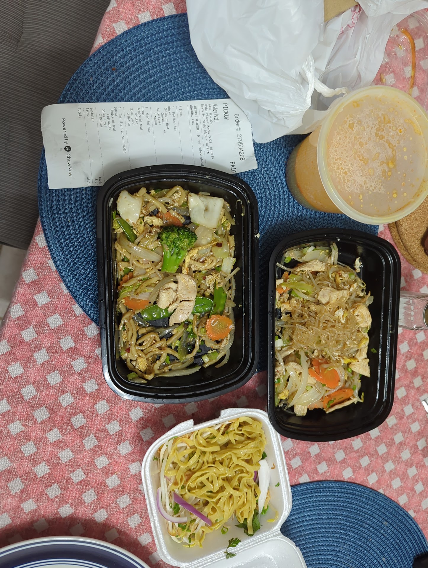 When we asked for the rest of my Khao Soi to be packed to go, my husband mentioned to the waitress that it was less spicy than I expected but still delicious. The waitress packed my food up and brought out little cups of their chili sauce and chili oil to pack with me.