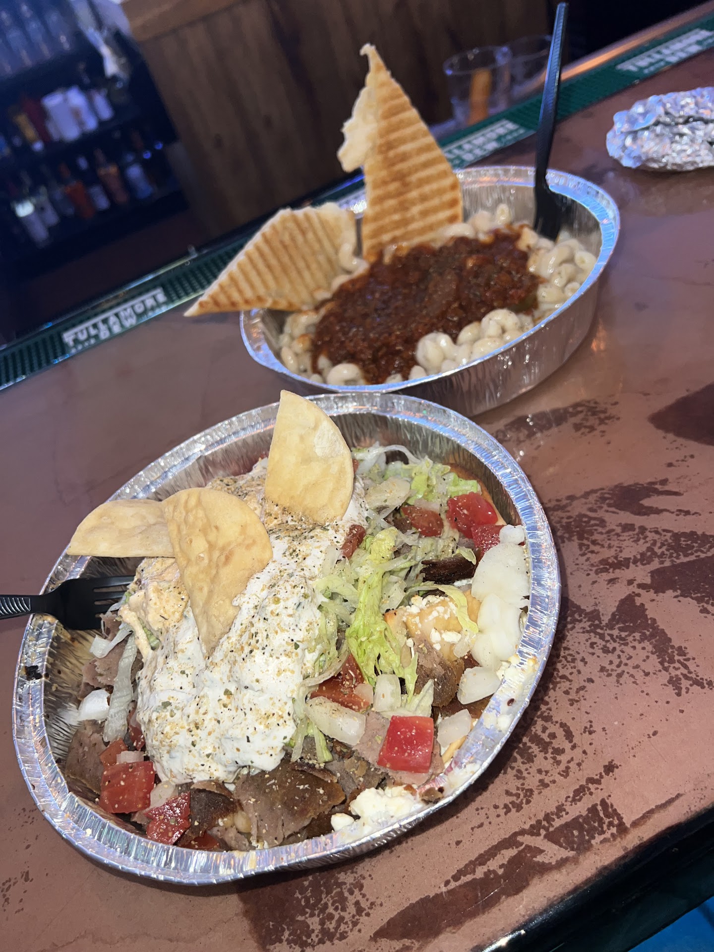 Read moreWe stopped in for a late night bite which is next to impossible to find in Frisco but Boom Boom’s did not disappoint! Before we even looked the menu Scotty was extremely personable, went over the menu with us and gave recommendations. The gyro nachos were out of this world! They were piled high with all the yummy toppings but the tzatziki …. Just wow! So creamy, flavorful and fresh!! My husband had the chili Mac n cheese and it was just as delectable. The chili is a beef lamb combo with no beans and was the star of the show and some of the best chili I’ve had! My only complaint would be my nachos were so good I inhaled them and got full and had to stop...