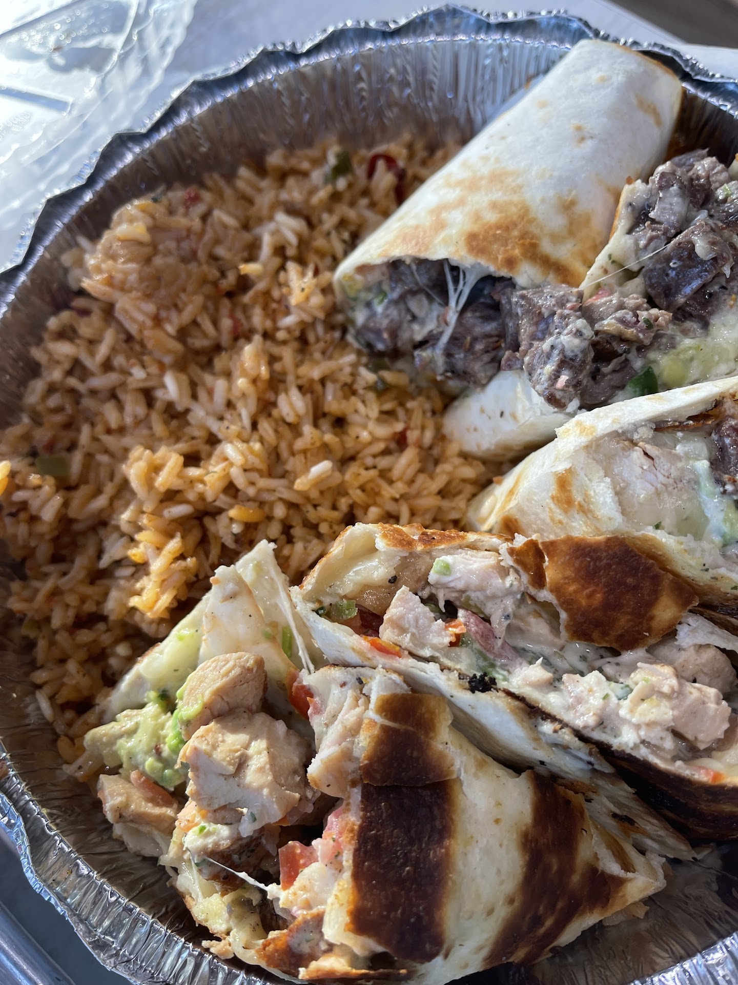 The food... Ingredients were great, super fresh and tasted great. What ruined my whole dinner was the queso. $10 for a cup of queso we couldn't even finish it was so spicy. We eat spicy food, sauce is our thing... But this was ridiculous. They drowned my burrito and rice in it, I couldn't even eat it. Especially given the fact their menu doesn't have one thing listed as being spicy, except for the quesadillas. The funny thing about that, my boyfriend ordered that and it was the only thing that wasn't spicy. I'm posting pictures to show their menu... As mother,y boys wouldn't have been able to eat this type of spicy. It's wreckless, no caution or warning signs anywhere about it and a waste of our damn money. Way over priced here. I will not ever recommend this place on any level. In fact, I hope you all steer clear, don't waste your time with bad service... Or your money on food you can't even enjoy. If I could give this a negative star rating, trust me, I would. The empty parking lot shoulda been my first red flag. The best thing about this place other than the young lady, was it being attached to 888 COOK HOUSE. Go there instead, you can never go wrong there and the service and food...