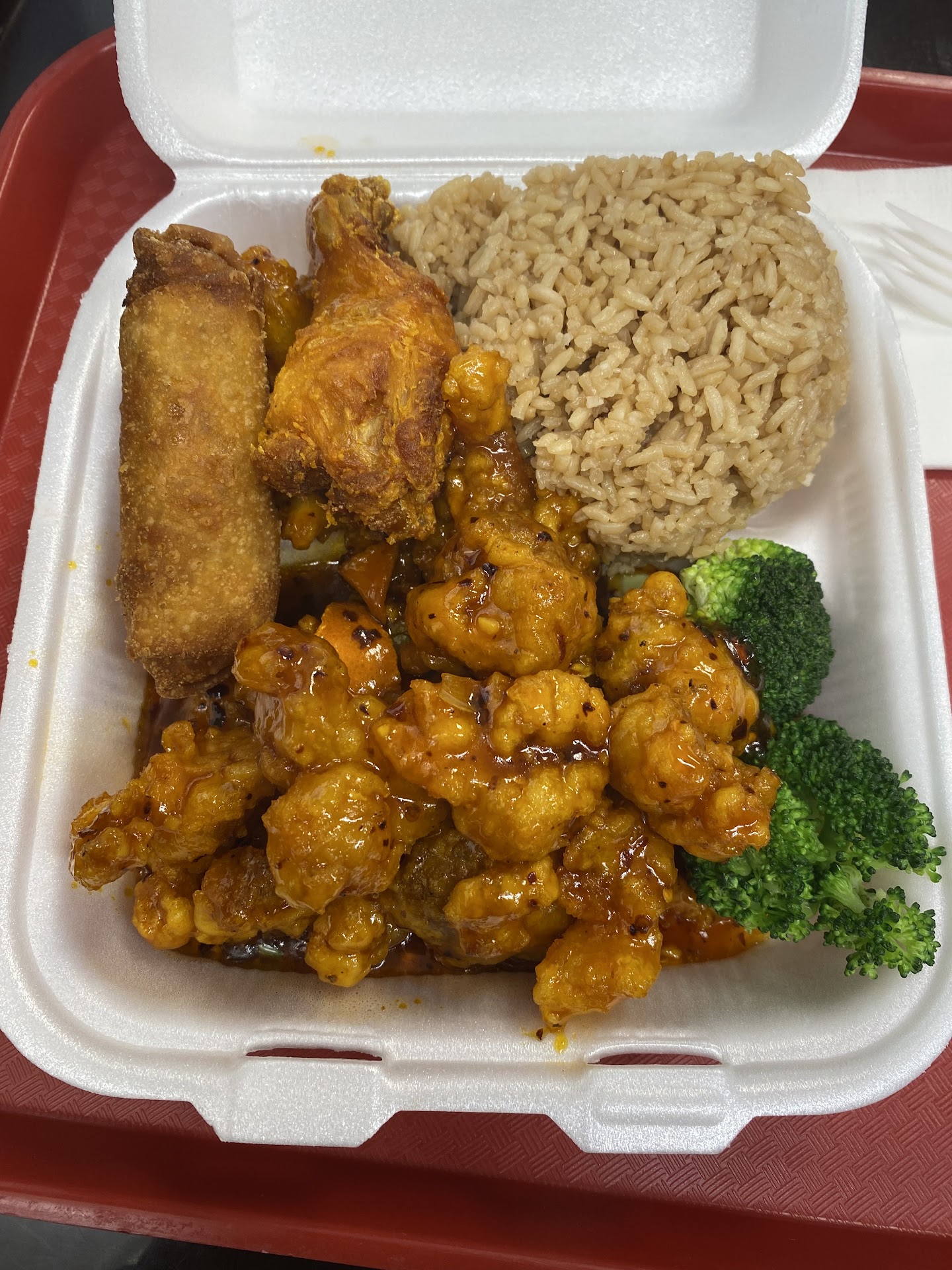 The portions HUGE!! We were both starving, ate until we were stuffed, and still both took enough home (basically half) to enjoy it for another meal today. We also got an egg roll each and they were extremely freshly cooked. I asked if they had any homemade hot mustard and the gentleman there gave me two biiiig cups of the best, strongest hot mustard we’ve ever had! It was great!