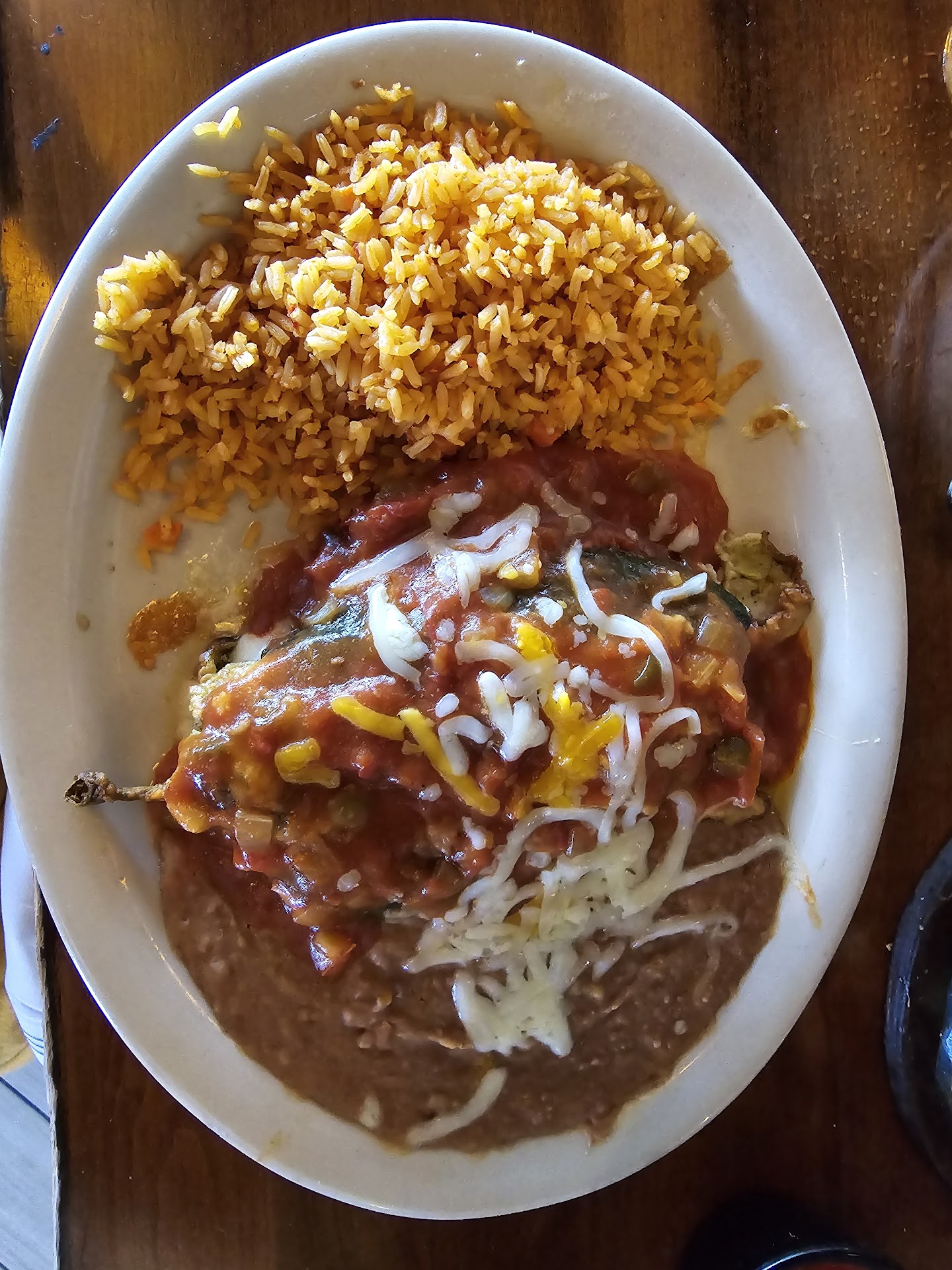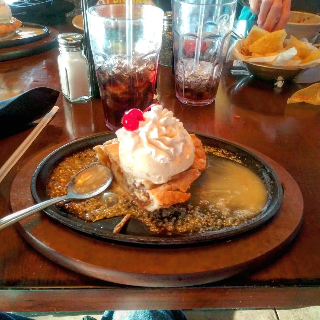 We came in w/ a group of 11 people at 5:30 today. I ordered the fajitas & apple pie for dessert. Every Mexican restaurant I go to, I always order the fajitas my first time there. The fajitas here were good. Chicken tasted fresh. The seasoning was good as well as the sauteed onions & other stuff. The rice & refried beans were also good.