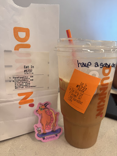 Read moreI visited this Dunkinâ this morning and ordered two donuts and a small latte. When I got to the window, I was handed a large drink. I mentioned I had ordered a small, and the employee told me that whoever took my order put down a medium. I explained that I specifically wanted a small because I donât like the larger sizesâthey just add more milk without increasing the espresso, which I donât enjoy.