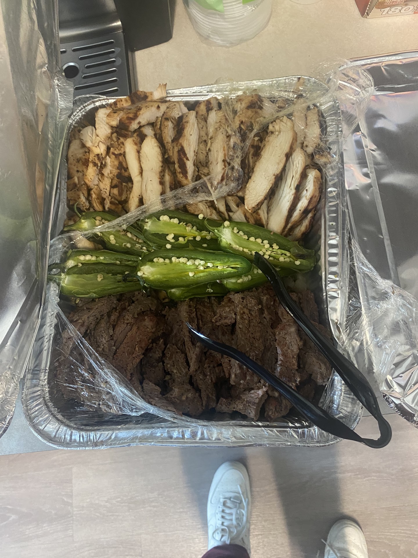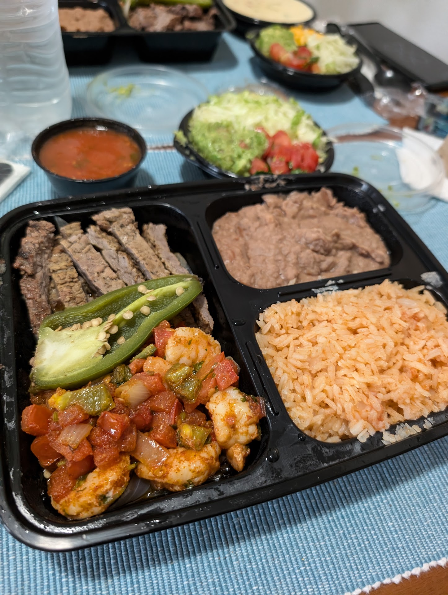 When I unpacked everything immediately, I noticed all of the food was truly cold. It had probably been made sometime around 515, and had ridden around in an uninsulated paper bag for the better part of an hour and 20 minutes. Additionally, all of the food was very lackluster. It was underseasoned and candidly It looked like all of it had come out of a can. I ordered the beef fajitas and the shrimp fajitas, and both meats were way over cooked.