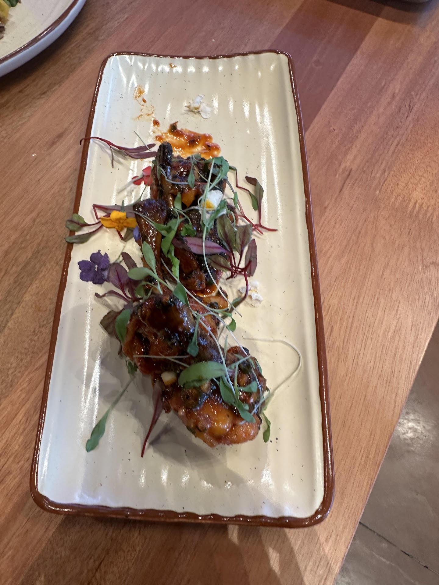 Then midway through the second they turned it on to the mavs game and nobody was cheering them on when they scored and they felt they had to turn up the volume on the game to have a similar atmosphere to when people were cheering for the stars. On top of the fact that they had the basketball game on the huge screen one of the other walls. Did. Not do the same when the mavs took the main screen. Oddly it also felt warm. People were fanning themselves with the menu. Left to watch the game at home.