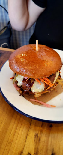 Read moreCame here with the wife and brat, was craving a burger but not just any burger needed something new and different, and I think I found the place. Had driven past the place a couple of times and never paid attention due to the funky location, but reviews looked good so, told the wife it's burger time!! So this is an order as you come in,get your own drinks, condiments place, My one pet peave I have is if you gonna make me do all these things then have decent prices, that said it is a bit on the pricey side, and Ala carte (Not my favorite) OK so I had the Haystack burger, which was really tasty, juicy and greasy and all around good, one thing though, not a fan of soggy buns, and this will happen with this burger type,still really enjoyed the taste. The wife had the Escabeche burger, looked really nice and good presentation, she said it was not spicy, but tasted really good, and ofcourse the kiddo had a kiddo burger this did come with fries and a kiddo drink. Also ordered the Half and Half, Fries and fried pickles , both were delicious the place serves really good burgers and sides, also looks like they have several taps, with local beers? Even though it's on the pricier side, I will come back, because the burgers are good and...