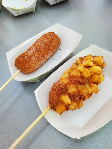 I think it is kinda rude to alter and say "Korean style corn dogs" when its actually called hotdogs. I get that it is more shaped like a corn dog, but the culture it self is saying it hot dog. It is not called corn dogs because originally it is made with rice flour, not corn. Thus, since its supposed to be hot, and with sausages, it is name to be hot dogs. In addition, the hotdog was not fresh, the oil was pitch black or brown, I don't think they change it a lot. You can taste the oily and typically you are not supposed to add sugar unless the customer wants it. But they added it regardless. They never told me it came with sugar coating, and I have health problems so I never want it to begin with. The menu does not say it comes with sugar coating. The female short cashier who has glasses was not very nice too. In addition, the taste was terrible. I would say the worst hot dogs I had in the north Texas area. I am well surprised there was not a single Korean...