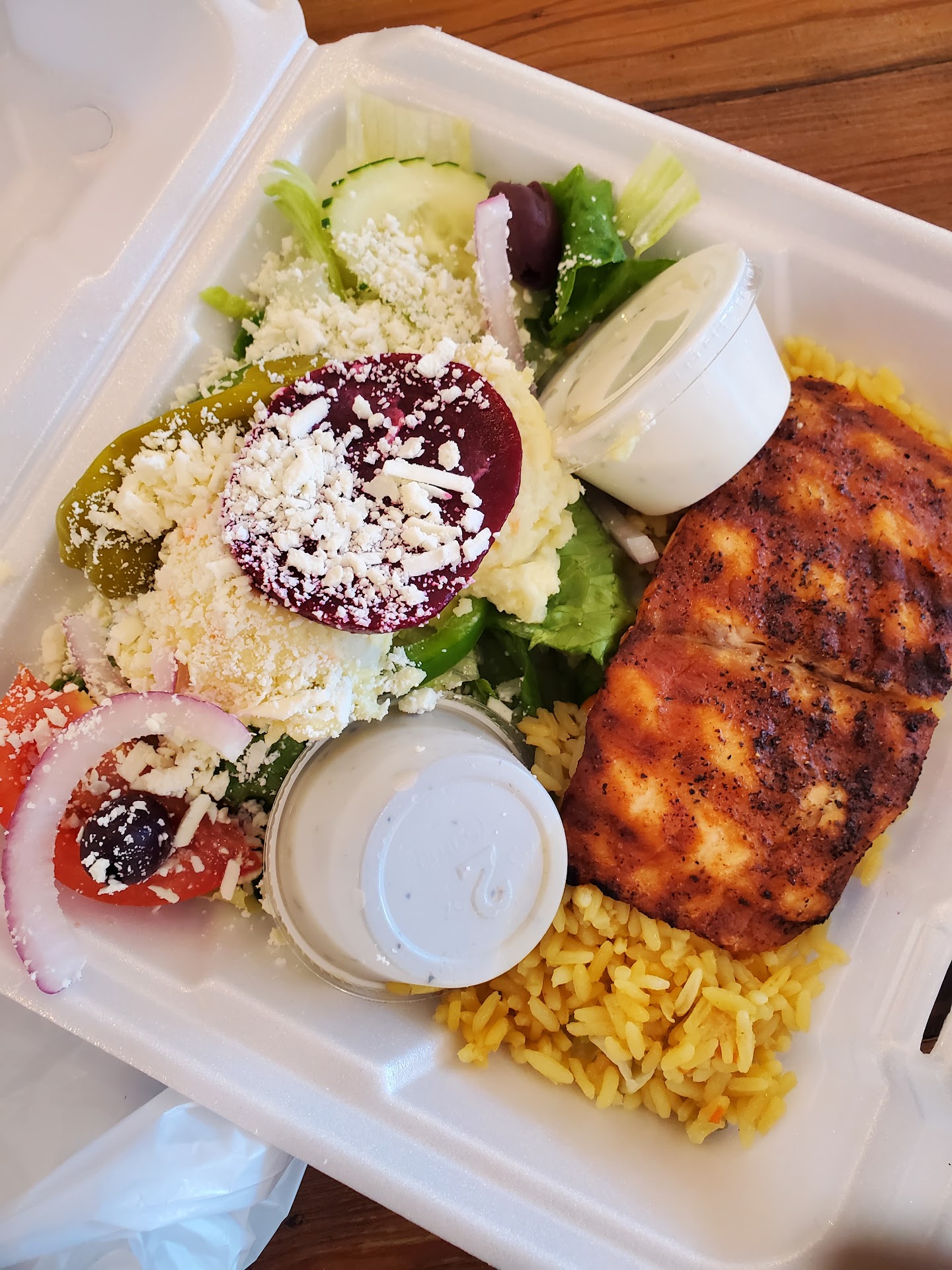 Read moreWon a gift card from a silent auction to Little Greek and I am glad I did! This Little Greek is tucked in a corner in a Tom Thumb plaza. Definitely if you blink, even barely, you will miss it--thank God for GPS! I walked in and was warmly greeted by the staff and decided to get their salmon platter with an extra scoop of potato salad. The lady who took my order was new, so she was having some trouble with the register and apologize profusely several times. She was so nice about it and the manager took her time to help her and not make her feel bad about not knowing what to do. I really appreciated seeing that because oftentimes you see the opposite.