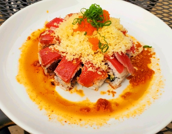 We received the Veggie Egg Rolls fairly quickly. It was served fresh and hot. The pastry in itself was very flaky and I enjoyed the bite of the egg roll. It went really well with the duck sauce. Next, we received the Bonsai Roll and Cosmo Roll. The Bonsai Roll had spicy yellowtail and avocado in the middle, and was topped with albacore tuna. I really enjoyed the ponzu sauce on the side of the plate and it tasted fresh. I generally lean more towards smoked salmon when I get sushi so the Cosmo Roll was interesting. The Cosmo Roll had cream cheese and smoked salmon. The exterior of the roll was lightly fried with some tempura batter so it added some sweetness. The crunch and texture was really good. This was probably my most favorite roll of the 2.