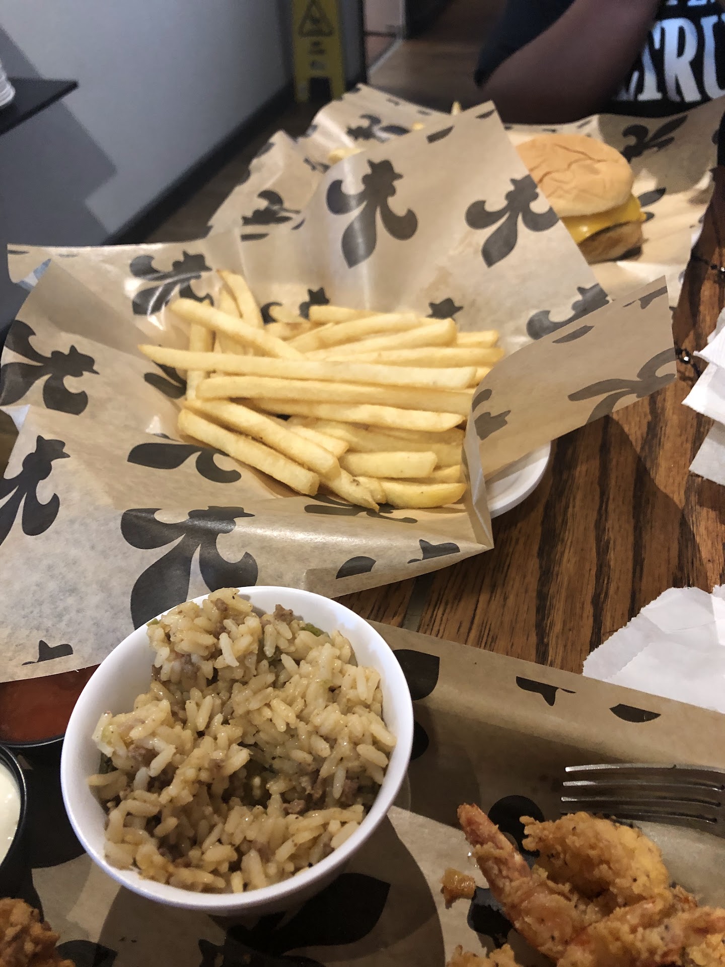 Spicy, but not so much that the flavors are hidden. Fresh caught crawfish. And the shrimp are fried after you order in small batches. Tender and crispy. Not sitting in a bin with a heat lamp. Nooo!!! They were perfect. Red beans and rice just like my favorite dive outside of Shreveport, LA. This is the real deal. Authentic. They already have special King Cakes ready for your Shrove Tues, Mardi Gras, celebration.