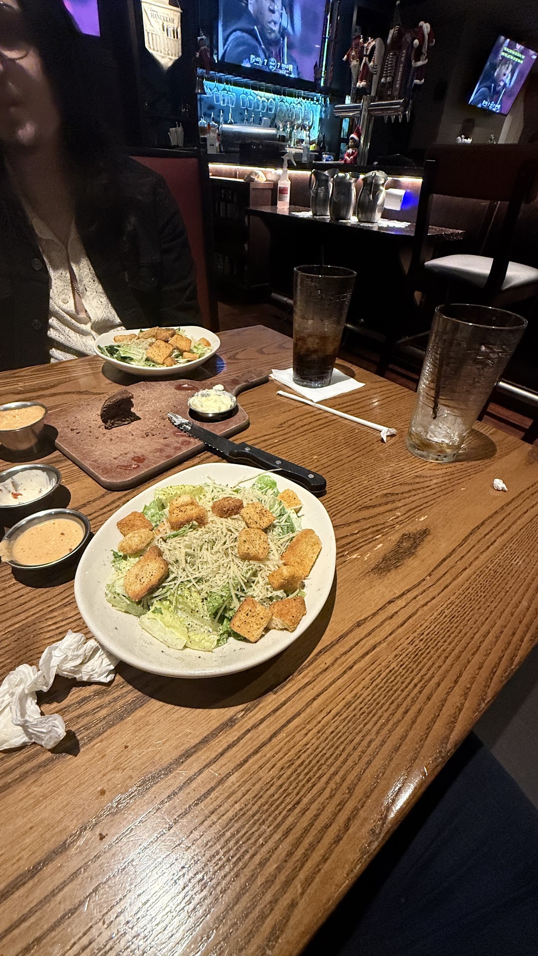 I want to start off by saying our waiter was very polite. He was clearly being overworked or perhaps they where understaffed because anytime we needed something he ran (not walked) to go get it, he’s the only waiter I saw and he did a fantastic job, i believe his name was Darron or something similar, an older African American gentleman. However that’s where my good review ends. My dad bought my brother and I gift cards to Outback Steakhouse for Christmas so we could go together. We chose tonight and the experience made me not want to recommend this place to anyone aside from the service of our waiter. After placing our order they had a separate man (not our waiter) bringing us our food. He acted almost annoyed or at least like he couldn’t be bothered. When he brought our Saleds out he placed them down before we had received any silverware and quickly left before we could even ask for any. My brother and I joked about the fact we didn’t have any way to eat it for about 10 minutes before he brought us our food. After handing us our plates he quickly turned to leave before I could hastily ask him for silverware. Upon Returning he kinda just tossed them on our table without even making eye contact and walked away leaving me to have to sort them out to my brother and his friend
