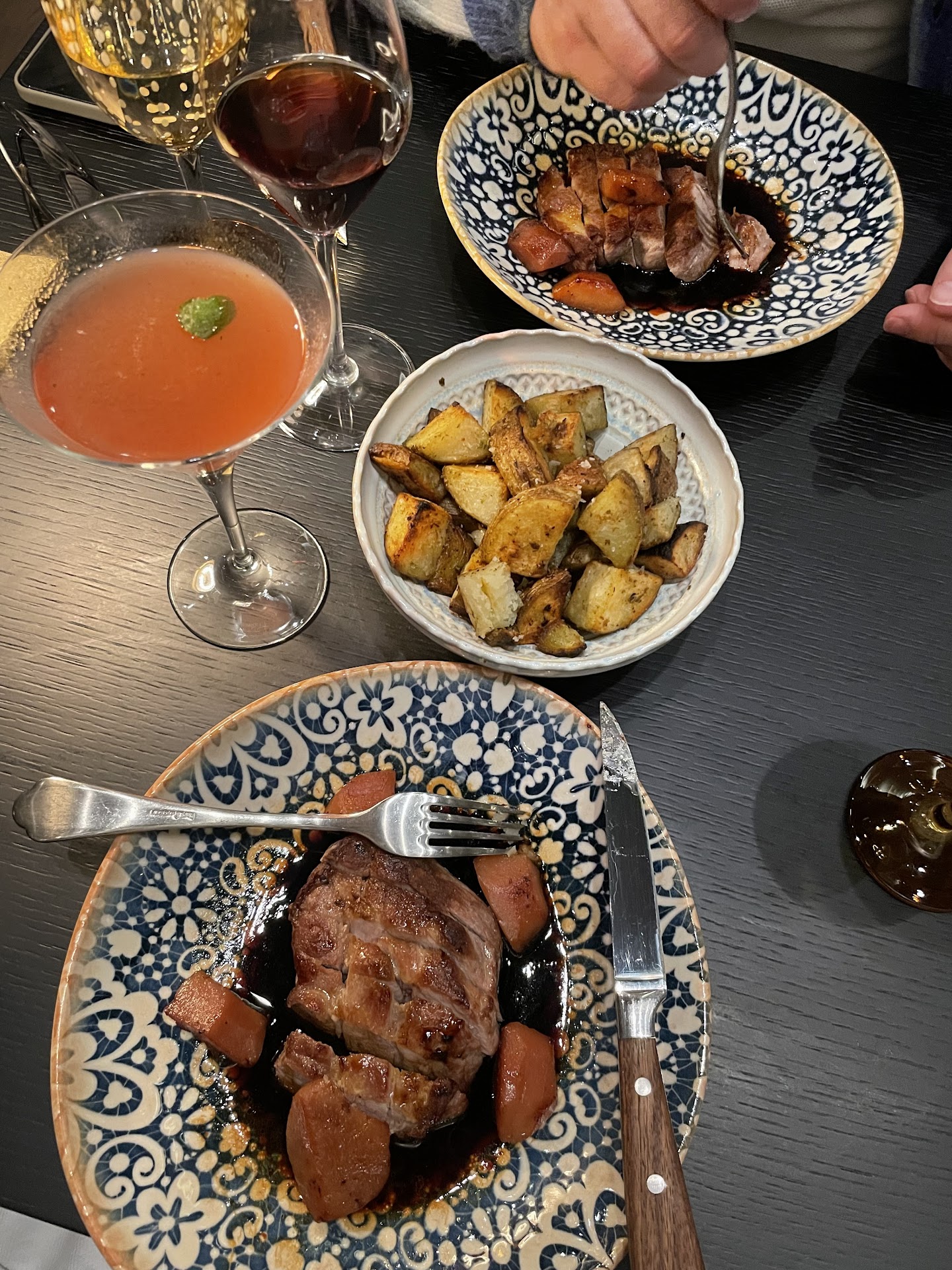 Booked a table for my husband and I to celebrate Valentines Day - I could not be more thrilled that this was our restaurant of choice. The atmosphere was absolutely beautiful, moody without being dark, modern decor and fantastic restaurant flow. I loved the atmospheric feel of upscale dining with a very approachable vibe. The hostess was punctual with our reservation and offered to check my coat for me. The table was always impeccably maintained - someone was there to remove empty plates or unused glasses very quickly and never felt imposed upon or rushed just looked after and maintained. The attention to detail on the dining experience was something you’d think to expect from a 5 star restaurant. Complimentary glass of wine upon our arrival, perfect little starter detail to the evening and soon following an amuse bouche. Our waitress Sarah was extremely knowledgeable and very helpful navigating the menu and helping us make choices throughout. I appreciated that the menu wasn’t $85+ per plate and made me feel as though I didn’t want to wait for another large holiday or big occasion to come visit - the menu pricing is a perfectly acceptable excuse for a mid-week date night. The Roasted Berkshire Pork Collar was beautifully presented on stunning mosaic plates and was packed full of flavor. The volume of food was perfectly reasonable - my husband and I each had our own entree and shared one side of the Roasted Potatoes. The almond cake was delicious although smaller portioned still equally enjoyable. No worries though because to bring the meal to a grand finale we were presented with two complimentary heart shaped macaroons 1 passion fruit and 1 chocolate and strawberry… I am woman enough to admit I asked for a second passion fruit because that little thing was beyond delightful. At the end of the night the hostess went above and beyond to help take photos for my husband and I to remember a very successful Valentine’s Day and of course all the hostesses know the secrets for the most flattering lighting in the restaurant so she helped guide us to the perfect spot. OH and speaking of great lighting… ladies, the bathroom has the best lighting for your bathroom mirror, my outfit is on point Insta worthy photos. I loved our experience here and I cannot wait to go back again...