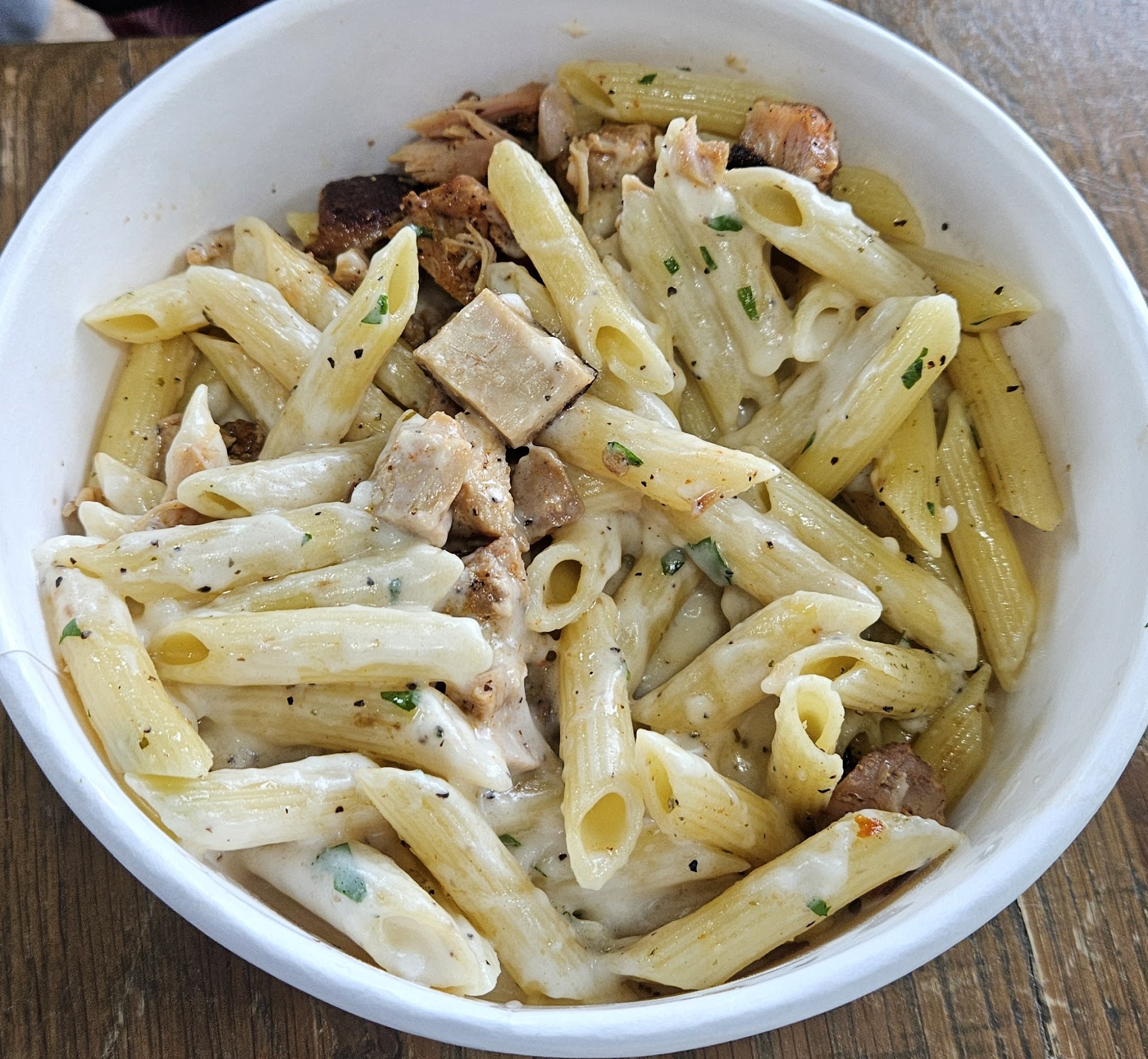 Okay. I have a lot to say so bear with me. First things first, this was my first time here and the line was out the door. I didn’t really want to stay but I gave myself a time limit of 15 minutes and said if I’m not serviced by then, I’d leave… I made it to the front in less than seven minutes! There were 3 young people up front. A Black girl with dreadlocks and two younger people next to her. It was frantic and the cashier girl kept handing her tickets back to back to back. She and the young man kept reassuring everyone they would be right with us and they were handling the pressure oh so well! They didn’t let it get to them once (I got their names before I left, Ms. Drea and Aiden). When I finally made it up to the front, you could tell they were tired and things were crazy but Drea made sure to greet me with “Thank you so much for being patient. I’ll be right with you.” As she handed a few tickets down the line to Aiden, she got back with me in a jiffy. I’d never been here before so I didn’t know what to get and while there was still a line of customers behind me, Ms. Drea treated me as if I wasn’t wasting her time. She was kind and patient with me and walked me through every step until I got what it was that I wanted. (I wound up creating my own pasta). When I got to Aiden he was just as friendly and bubbly as Drea and they didn’t make it seem like they were trying to rush us all out the door. They made sure to treat every one of us like a customer and not just a number. I will definitely be back! HOWever, the girl at the end of the line was of absolutely no assistance! If it wasn’t for her uniform, I wouldn’t have even known she was a worker! She stood there idle as Drea and Aiden ran circles around her. I mean literally just stood there! I’ve worked in fast food before so I know how it is when those fight or flight skills kick in. This young lady had NONE! I didn’t get that girl’s name but I was sure to ask the cashier of Drea and Aiden’s names before I left because they deserve recognition. Not only was the food exceptional but the service was top tier! I’ll be sure to come back when I’m on this side of town again. Sorry for the long review, but I wanted to...