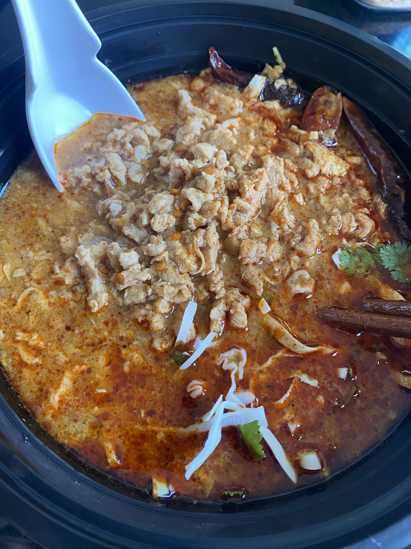 Read moreIt was 8:30 pm getting late at nite and this place closes at 9 pm so we came here first time and oops there's a receptionist and cashier as well . But how to order ? Finally found a sign that says self order at the kiosk , saw 1kiosk . With few questions to the cashier , we were able to click our orders , yellow curry with chicken , fresh veggie roll with peanut sauce . Tom yum soup . Soup heavily sour , sweet and salty , with mushroom only since I didn't click more stuff ! Panang curry - acceptable taste but frozen chicken always taste hard when overcooked ,served with rice Fresh spring veggie roll with small slice of bland chicken meat So tasteless until you dip in the dark brown sweet peanut sauce Not one of the best Thai restaurant so called . Will I come back again ? I don't think so. Also I am critical with serving hot hot food in plastic...