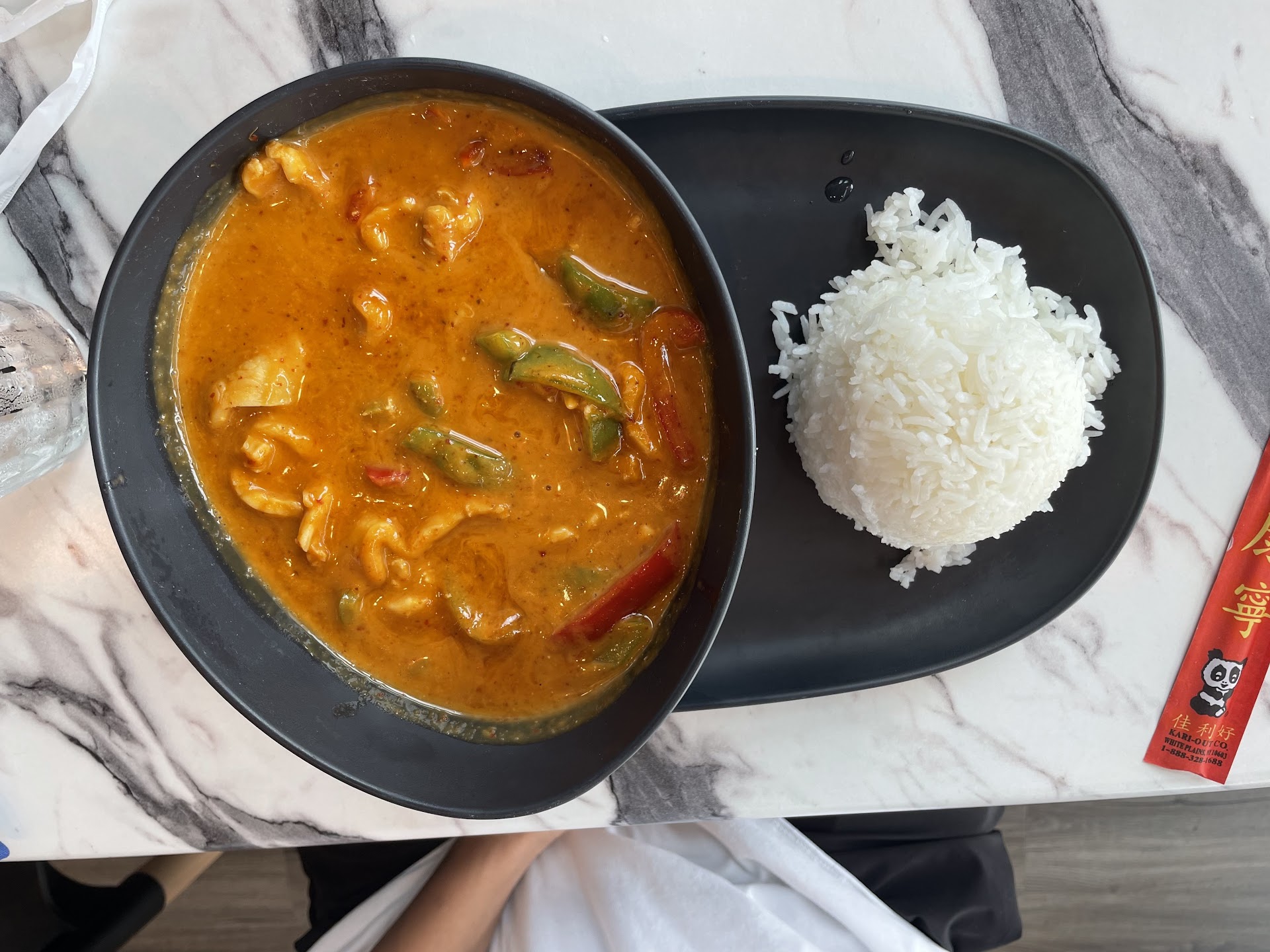 I recently visited this restaurant during the lunch rush and was quite disappointed with my experience. While the restaurant appeared clean, the lack of customers should have served as a warning sign. I ordered the curry rice with chicken, specifically requesting it to be medium spicy, and also opted for the shrimp kabob appetizers. Unfortunately, the quality of the food fell short of my expectations.