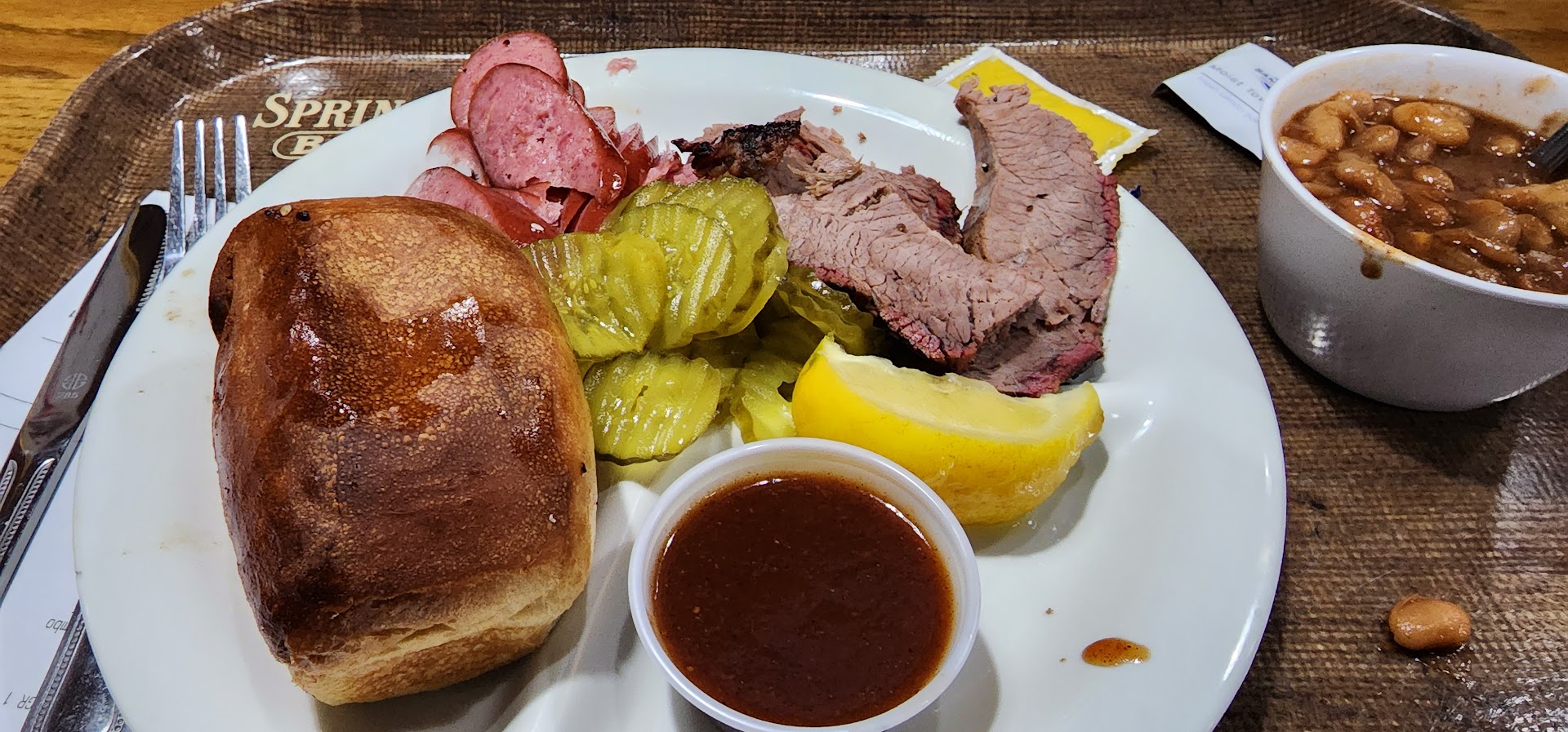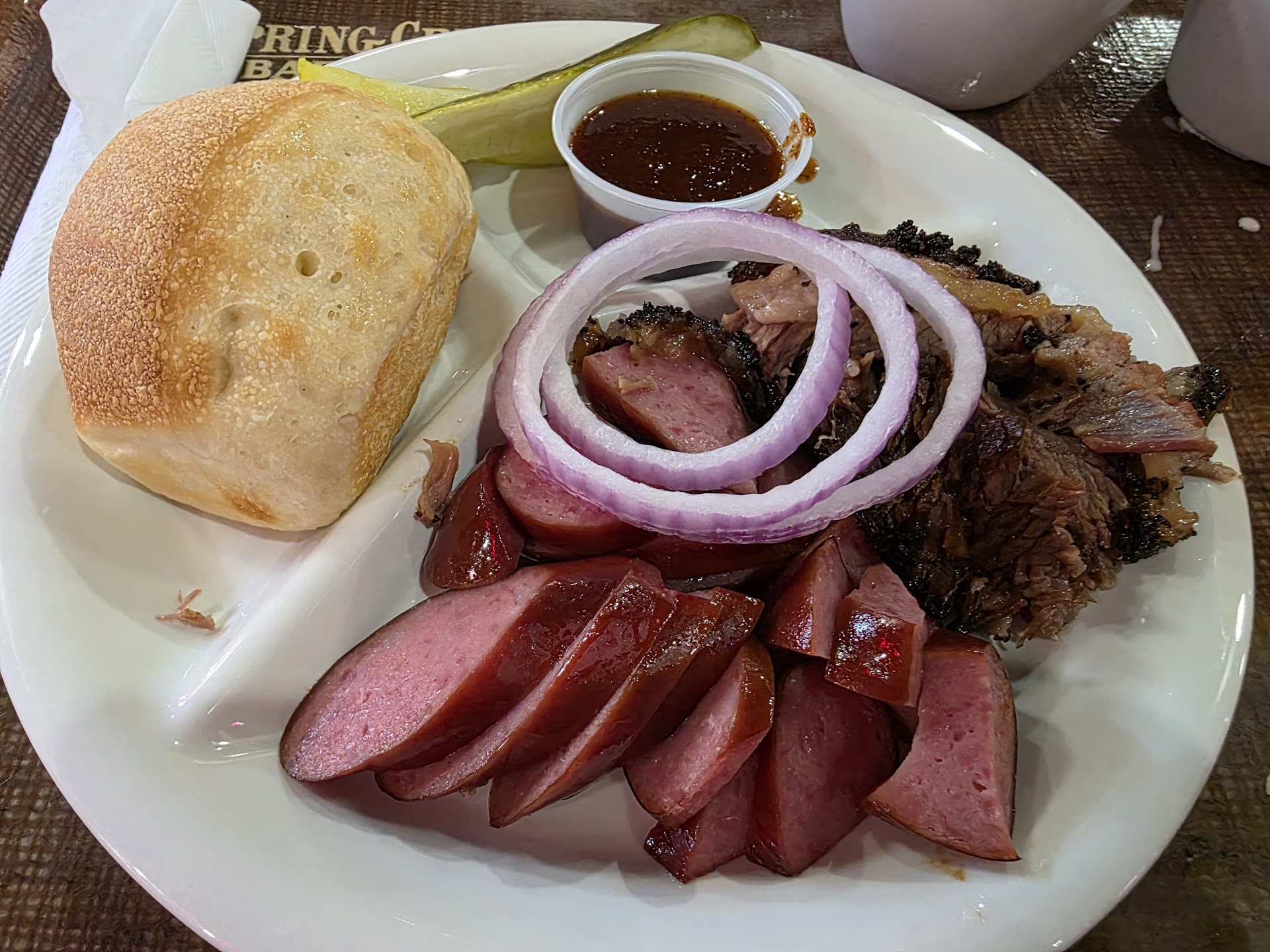 And then there was the check. Since when did a two meat plate cost $20!?! Plus tax and *tip and you're look at $25 for average bbq. Heck no. For that money, I'll go further up north to Hutchins or Rudy's. A bit sad since the value and flavor proposition for Spring Creek has apparently gone out the window.