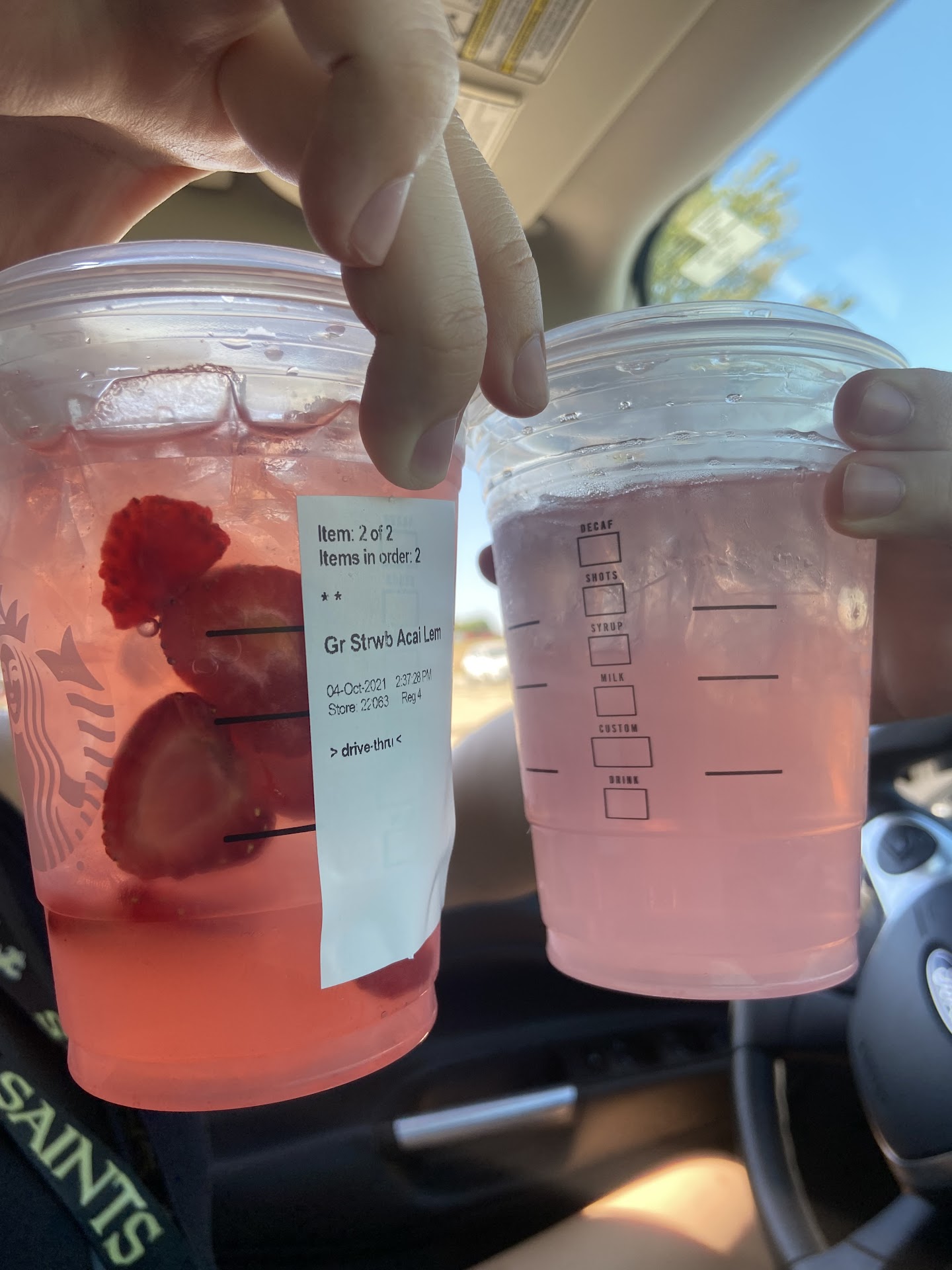 We went through the drive thru at around 2:30 (a slow hour) and asked for two grande refreshers. Despite them being out of our first choice of drink and an additional syrup, we continued with our order to make the best of it. One pink drink and a strawberry aƧaĆ lemonade refresher. Once we pulled up and got our drinks, they automatically looked wrong, as we get these drinks all the time. There was an immense amount of foam on our refreshers (which shouldnāt happen) and no dried strawberries. When we tasted them, they tasted mostly of water and so we asked them to remake it. Usually Starbucks is friendly and quick to fix any problem but this time, they looked put out at our outrageous request of remaking the drinks correctly. They took back our drinks (which never happens) and while they were āremaking themā we saw the barista roll her eyes at us. When we got our ānewā drinks, they looked and tasted the EXACT same. The pink drink for sure did not get remade because the foam on the top of the lid was identical to the one before it. Itās like they just tore off the sticker and said āhere get out of the line.ā It just felt like we were a burden for asking for the right tasting drink and, despite our politeness, felt unwelcomed. Weāve never felt this way at a Starbucks before and donāt plan on coming back to this location. We drove to a different location at Cross Roads and they fixed it without hesitation or eye rolls. They were so friendly and helpful and they made it taste right with no foam and they actually added the dried...