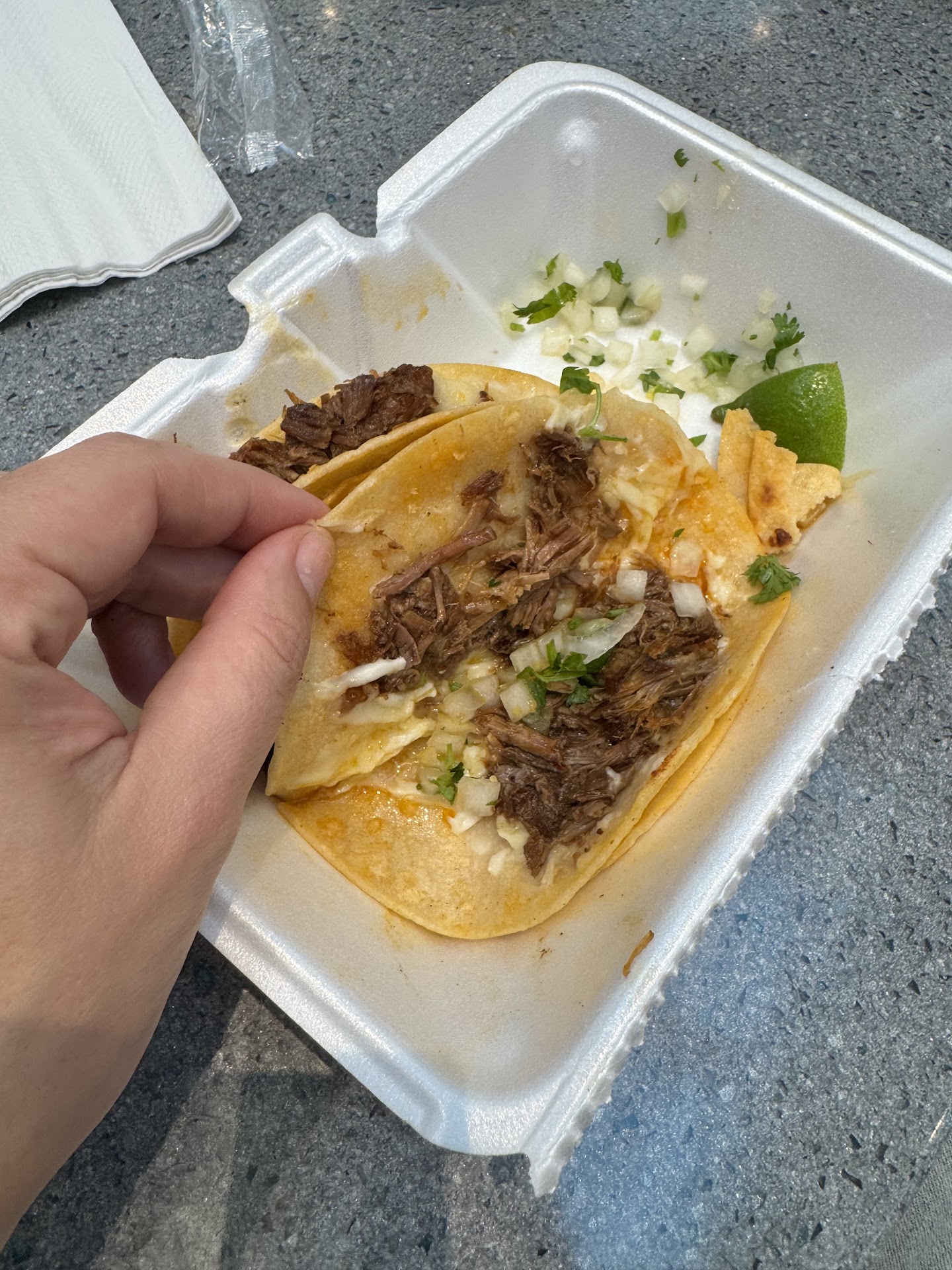 Then came the brisket tacos, and I genuinely wish I hadn’t taken that bite. Hands down the WORST taco I have ever had in my life. It was so disgusting that I spit it out - I refused to swallow it. That’s how bad it was. Dry, flavorless, and completely inedible. And I’m saying that as someone who grew up in Texas and lived in Mexico - I know bad tacos when I taste them.