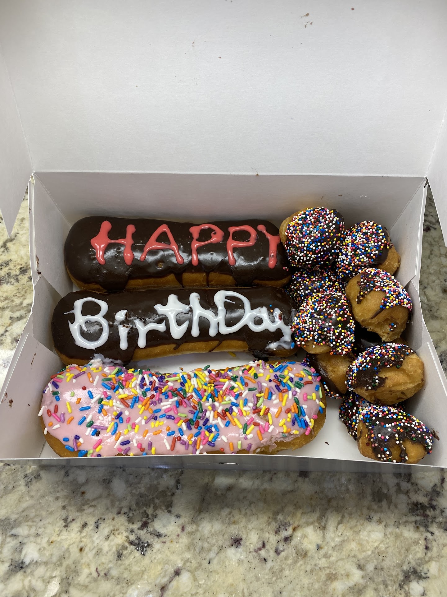 The family I nanny for always get these amazing doughnuts that say Happy Birthday & get their names in doughnuts. They looks great and taste amazing!