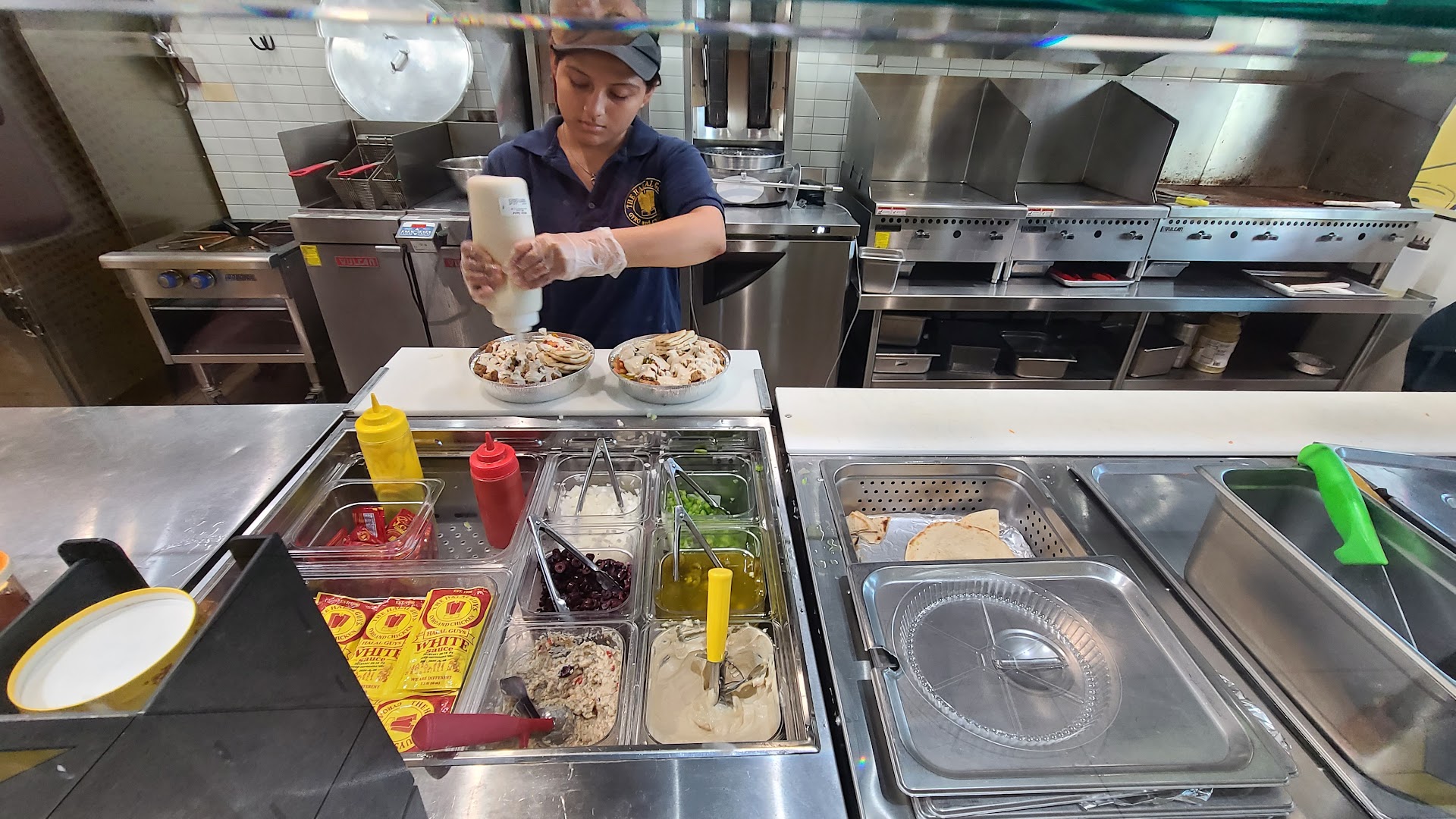 I had the pleasure of enjoying dinner at The Halal Guys tonight, and I’m still savoring the memory! The food was absolutely delicious, bursting with flavor from the very first bite. The chicken was perfectly tender, juicy, and seasoned to perfection—not dry at all, which is such a rare treat. The vegetables were incredibly fresh and crisp, adding the perfect balance to the meal. Everything was well-prepared and served piping hot. The famous white and red sauces took everything to the next level, just the right amount of spice and creaminess. What truly made the experience outstanding was the service. Friendly, fast, and attentive—everyone there made sure I had everything I needed and left with a smile. Tonight’s dinner was not just a meal it was a moment of joy on a plate. Can’t wait to come back...