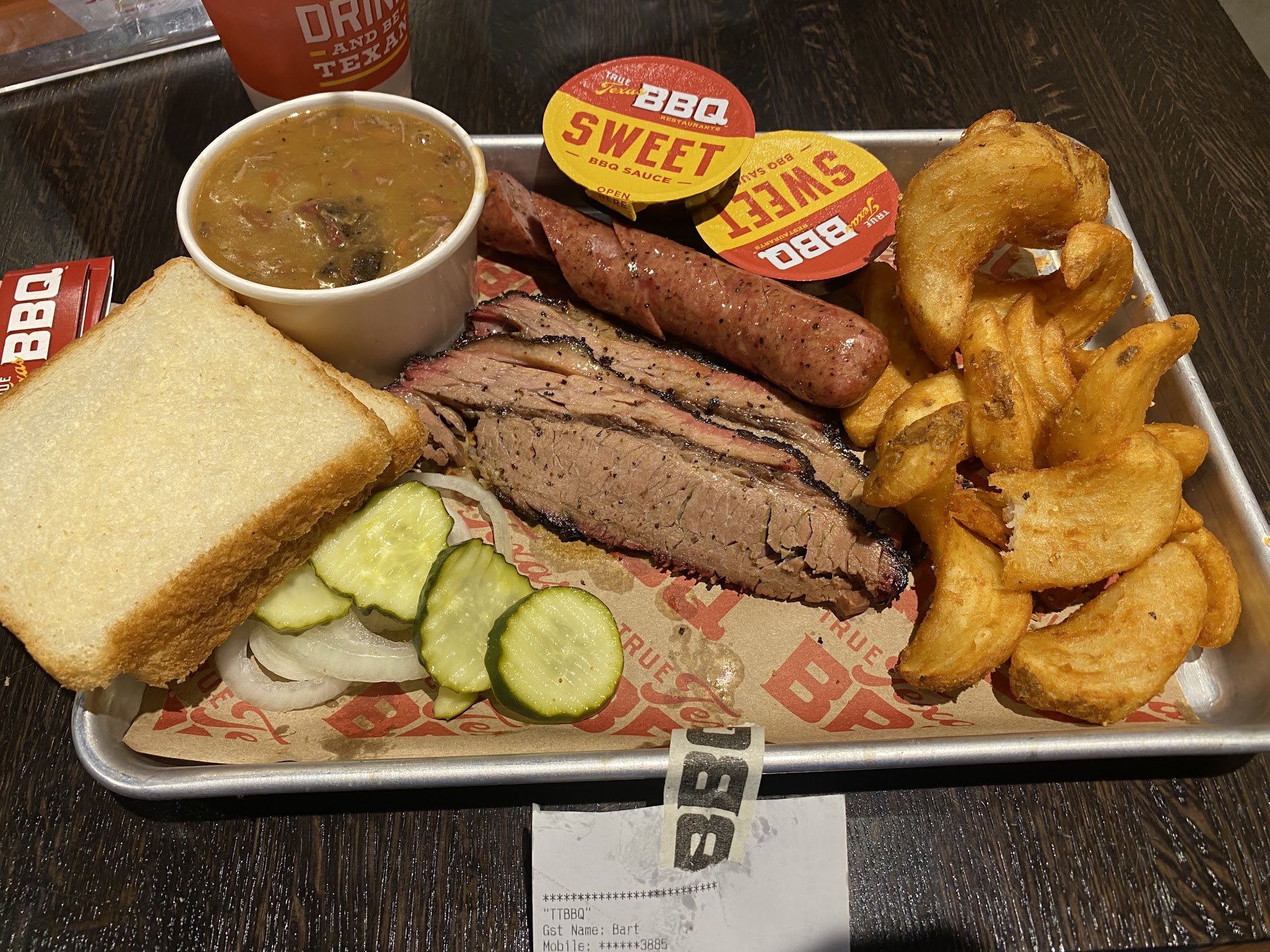 Read moreI love H‑E‑B! I shop there often and when this new location opened close to me it was all good! However today I had some time and decided to try the BBQ restaurant there. You order at a kiosk and they text or call your name when it’s ready. Ordered the two meat plate, brisket and sausage, brisket beans, twisted fries. 16.99. It looked beautiful but looks were deceiving, brisket was tender but the bark had a highly bitter smoke taste. The sausage was awful! Too hard of a texture and because of that, I broke two of the plastic knives they provide you with. Tasted like Oscar Meyer Bologna. No smoke taste at all. Beans were canned pintos with the cornstarch thickening agent and a few pieces of brisket thrown in. The fries were cooked from preseasoned frozen potatoes Apparently nothing is prepared from scratch. Finally they provide you with a premade container of Sweet BBQ sauce. It was worse than Masterpiece BBQ sauce and that’s terrible. I would think that H‑E‑B who is known for producing good food items from both their stores and Central Markets would serve such terrible products. I am a loyal customer and I will continue to shop at H‑E‑B but unless changes happen to improve TexasBBQ I won’t be back there. Sorry guys you dropped the ball on trying to automate and...