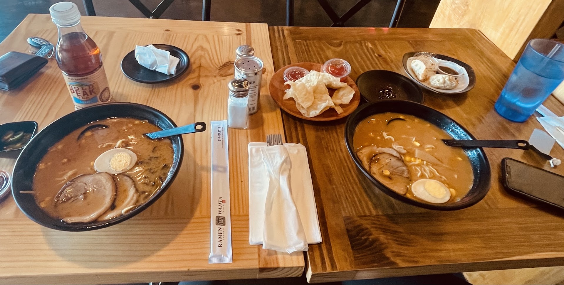 Read moreMy girlfriend and I normally go to Ninja Ramen but we were on this side of town and decided to try Wahta. Their Gyoza was great! We liked it better than Ninja’s. We ordered their Miso Ramen and we asked for certain vegetables to be left out which they still ended up leaving the black mushrooms in mine after asking for none which is not a huge deal I took most out however their Pork Broth was EXTREMELY salty therefore making the curly noodles salty as well. Luckily since I ordered their spicy Miso, their spicy sauce made it a little less noticeable but unfortunately that wasn’t the case for my girlfriend who ordered their regular Miso. The staff attempted to fix the issue by bringing a bowl of a different broth but it tasted like water. Sadly my gf barely ate any of her Miso and I could not finish all of mine and we still had to pay the full bill for the one she did not like or eat.