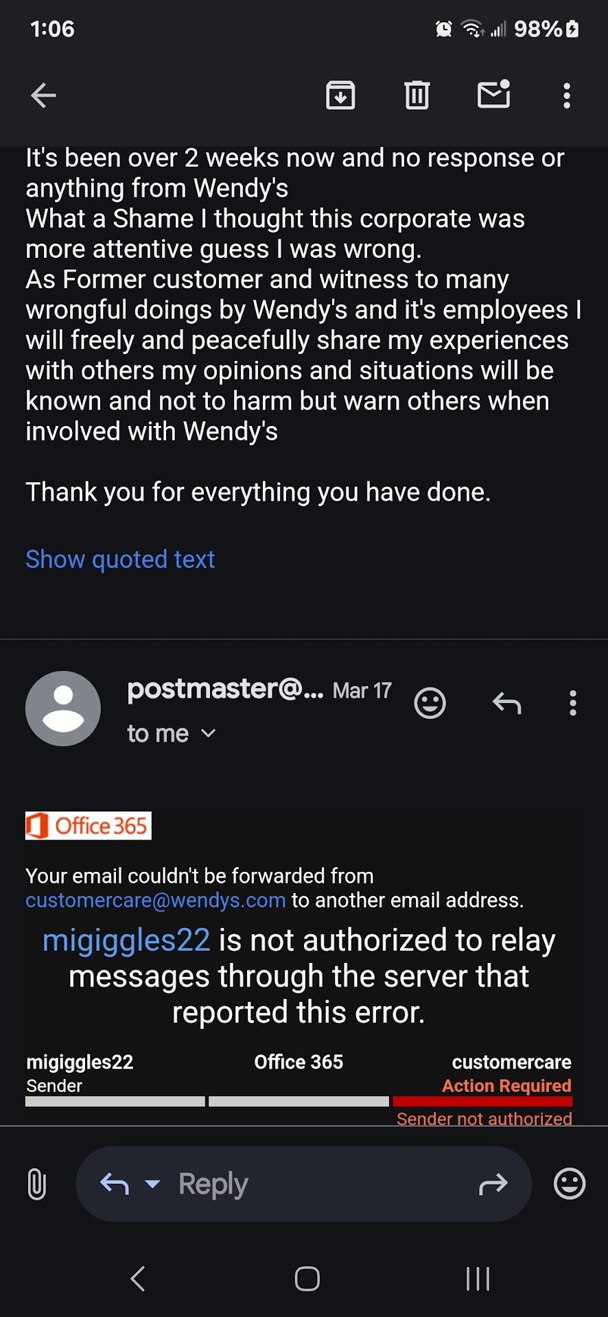He said his name was Donald Duck is what he claimed to be ! He literally sat there and argued with me over remaking my order. Worst experience ever ! Please do not come to this Wendy’s!!!