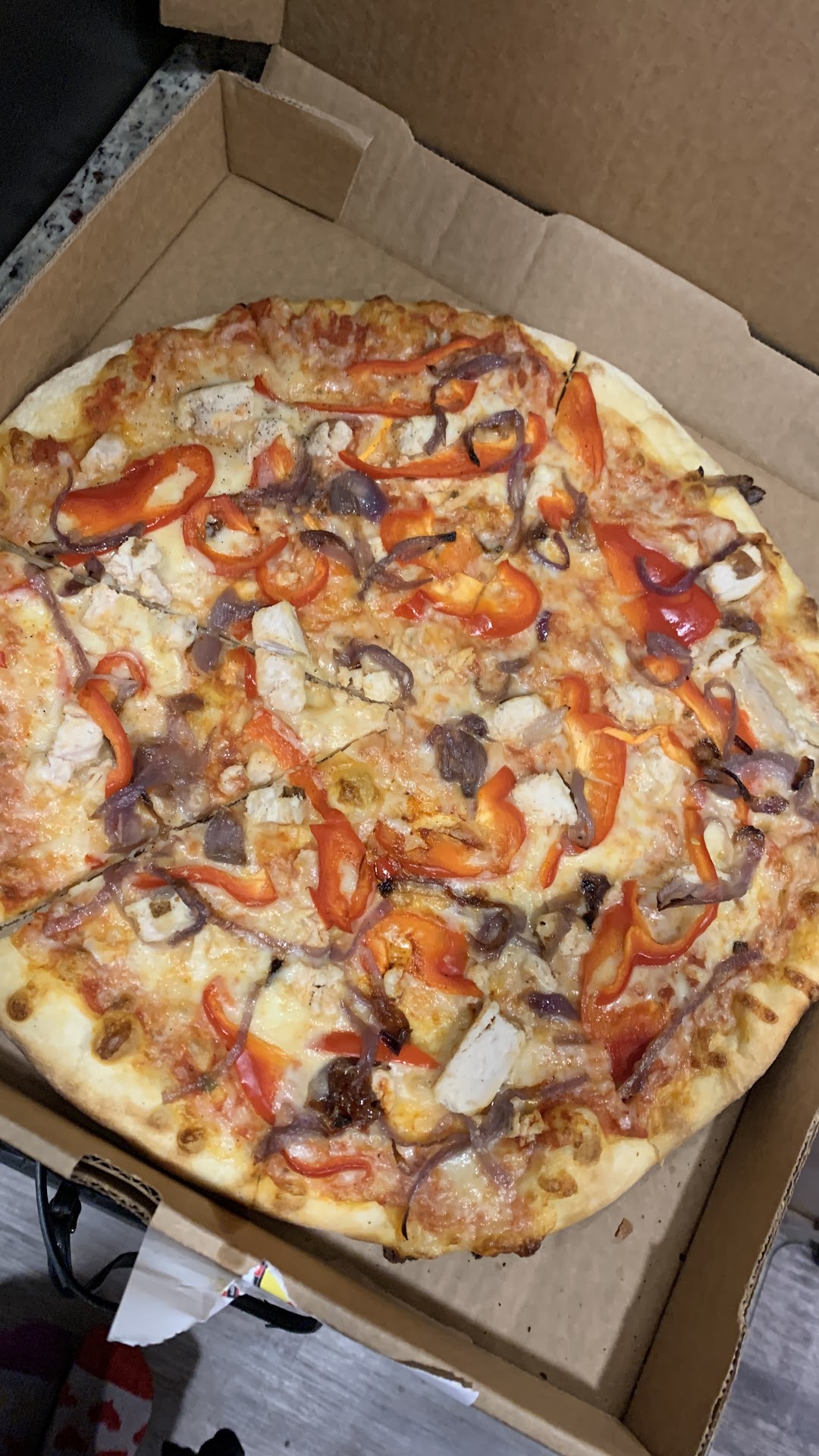 Read moreThe app MAKES you tip eventhough you drive and pickup yourself. There are no lights on in front part of the store, they looked closed. The front sign lit, the back where cooking food lit, but where the workers give you your orders it is not lit. Creepy looking. But very friendly, so I'm thinking I will overlook the lighting issues, could be a one off situation, but upon exiting I see their delivery driver parked in handicapped with flashers on, talking on phone about how lazy he is..there were other spaces open just 2 over from where he was.this is HUGE PET PEEVE bc have handicapped friends and family..there is no "grace period" in driver's manual etc...this seems to be a regular thing for drivers..so I probably won't be back...too bad bc pho pizza was good. Hey, I'm still holding a grudge against Exxon for Valdez..bc I have seen the mess still up there that they didn't have to clean up the...